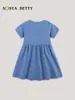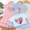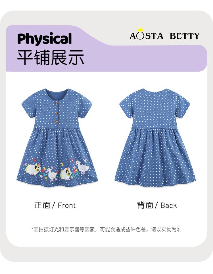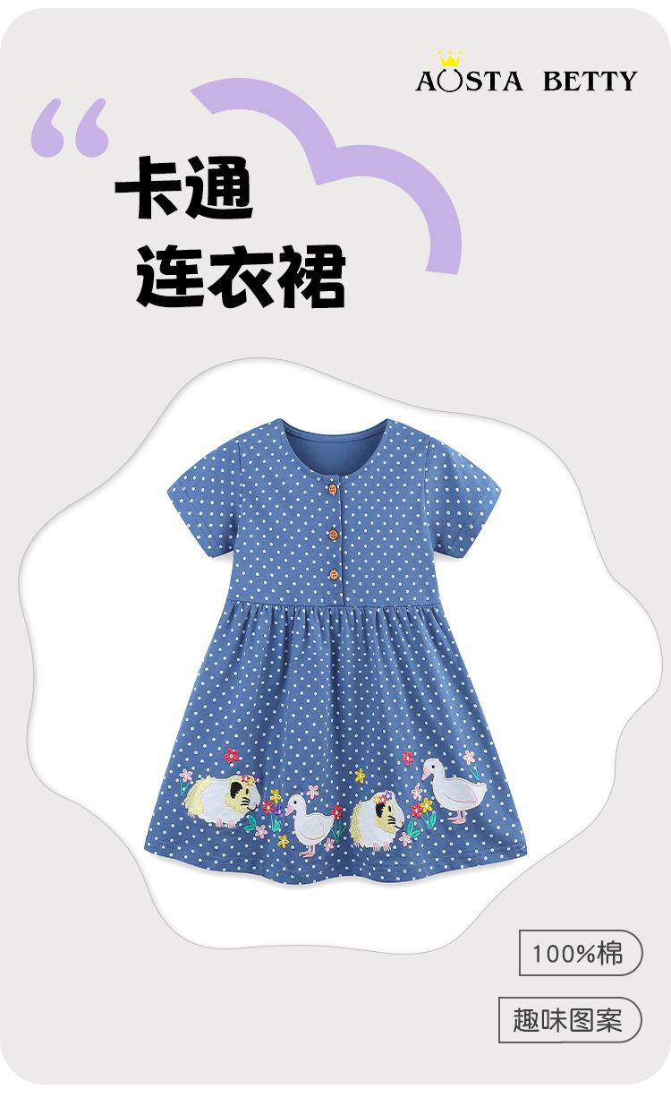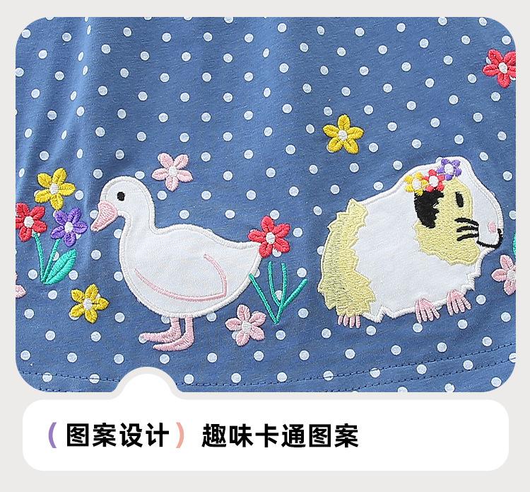 25 transfronteiriça verão novo vestido infantil onda animal bordado malha algodão meninas manga curta saia uma geração de cabelo