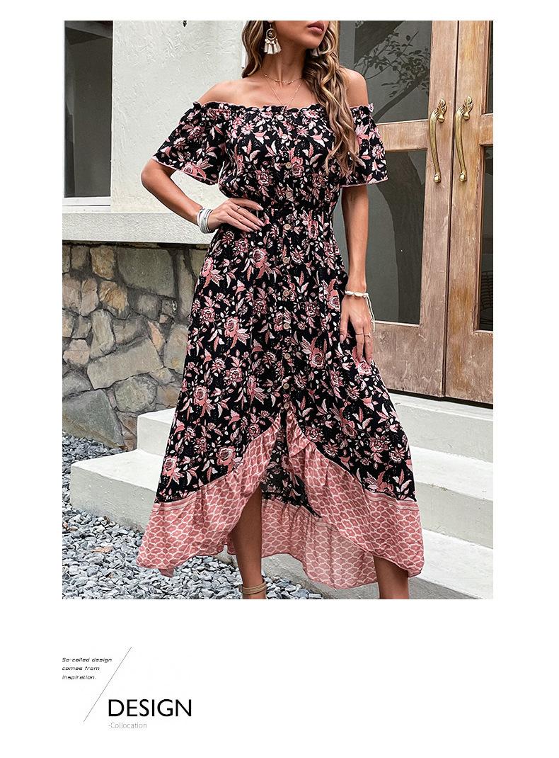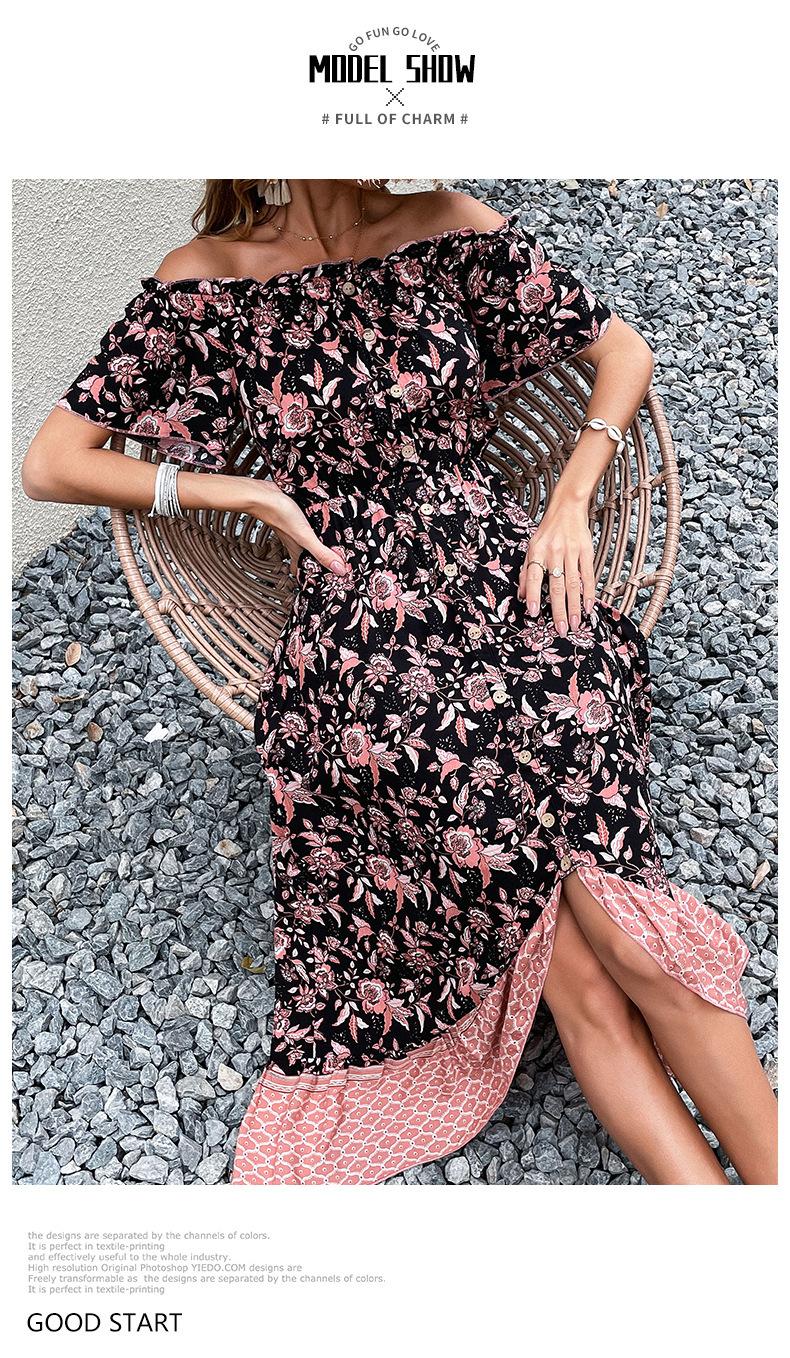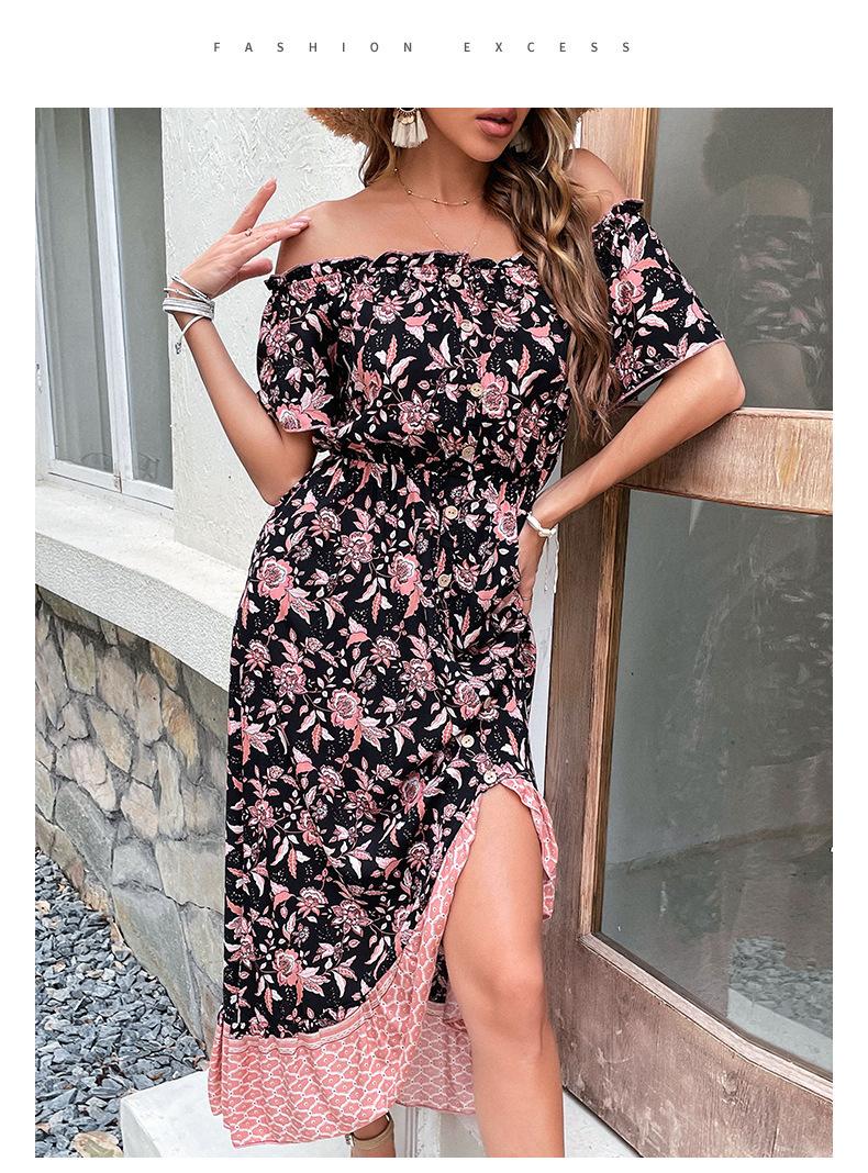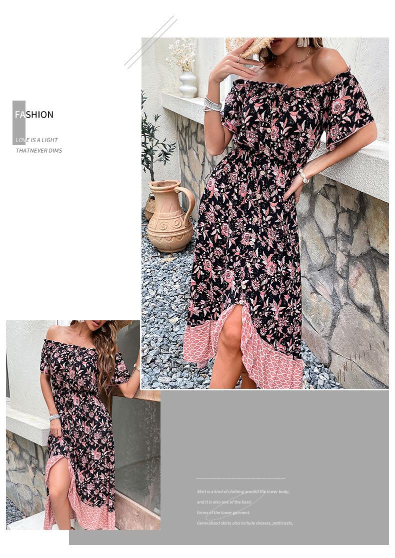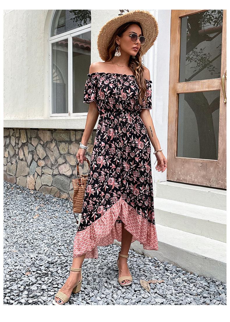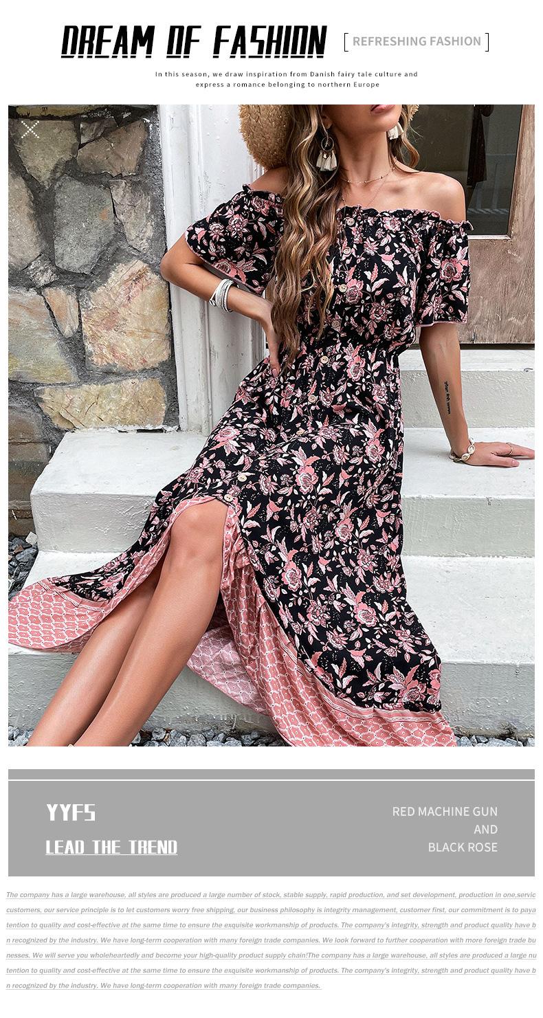 Compre Amazon Independent Station Comércio Exterior 2023 Verão Novo Europeu e Americano Transfronteiriço Roupas Femininas Gola Estampada Vestido Temperamento no atacado no Joom.pro