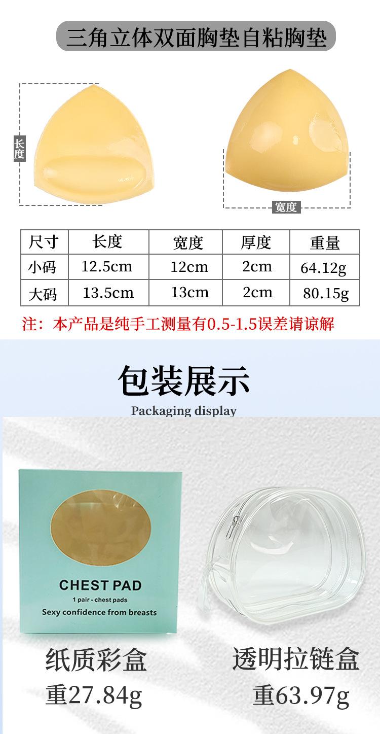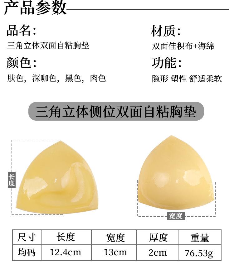 Almofada de peito dupla face triangular tridimensional transfronteiriça, espessada, roupa íntima invisível feminina, inserção de esponja de peito falsa, adesivo de peito autoadesivo
