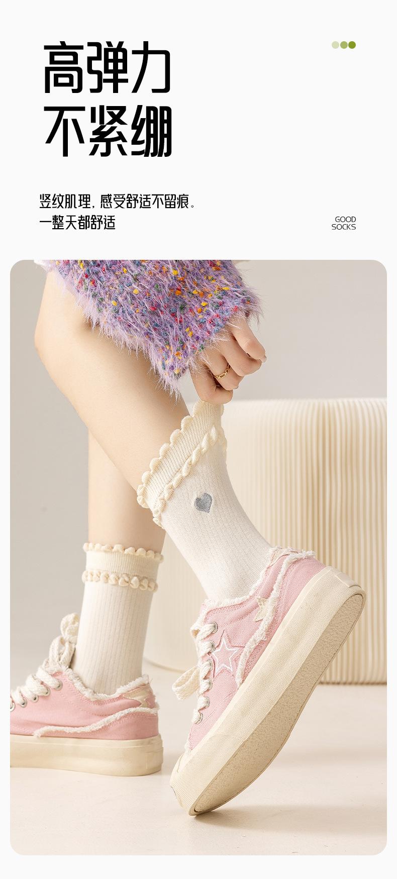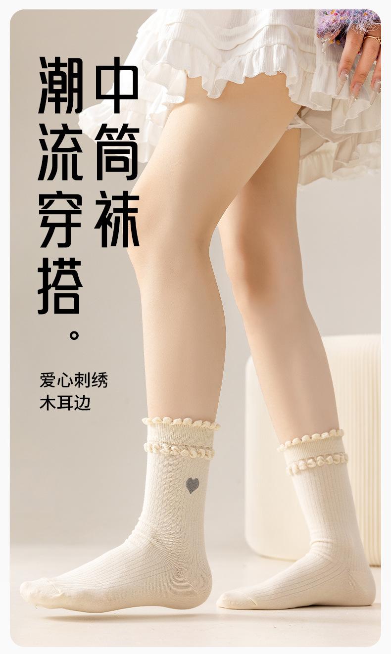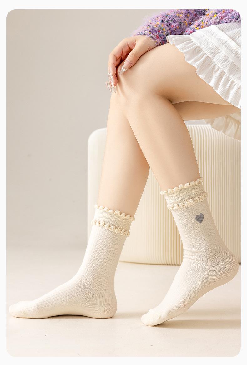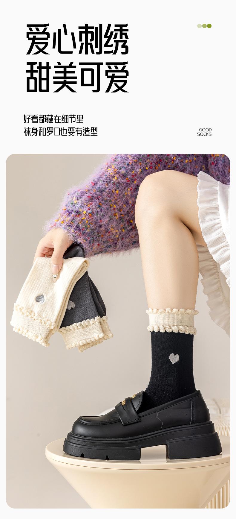 1141 Meias de comprimento médio com orelha de madeira Bordado infantil Amor Estilo japonês Balé Primavera e Outono Sapatos pequenos de couro Meias longas femininas