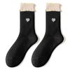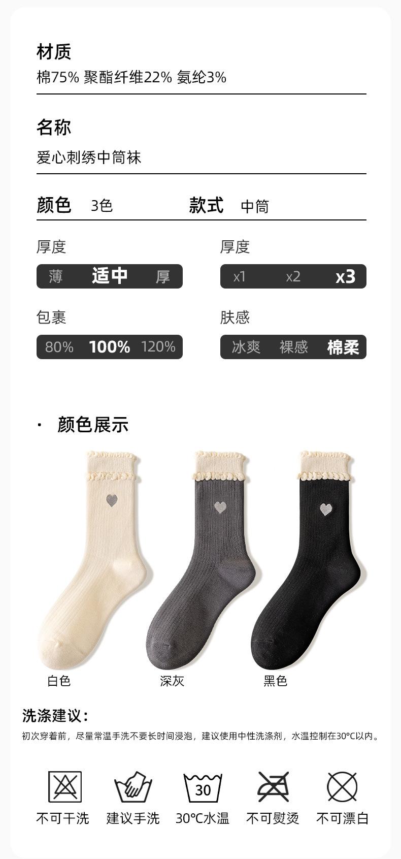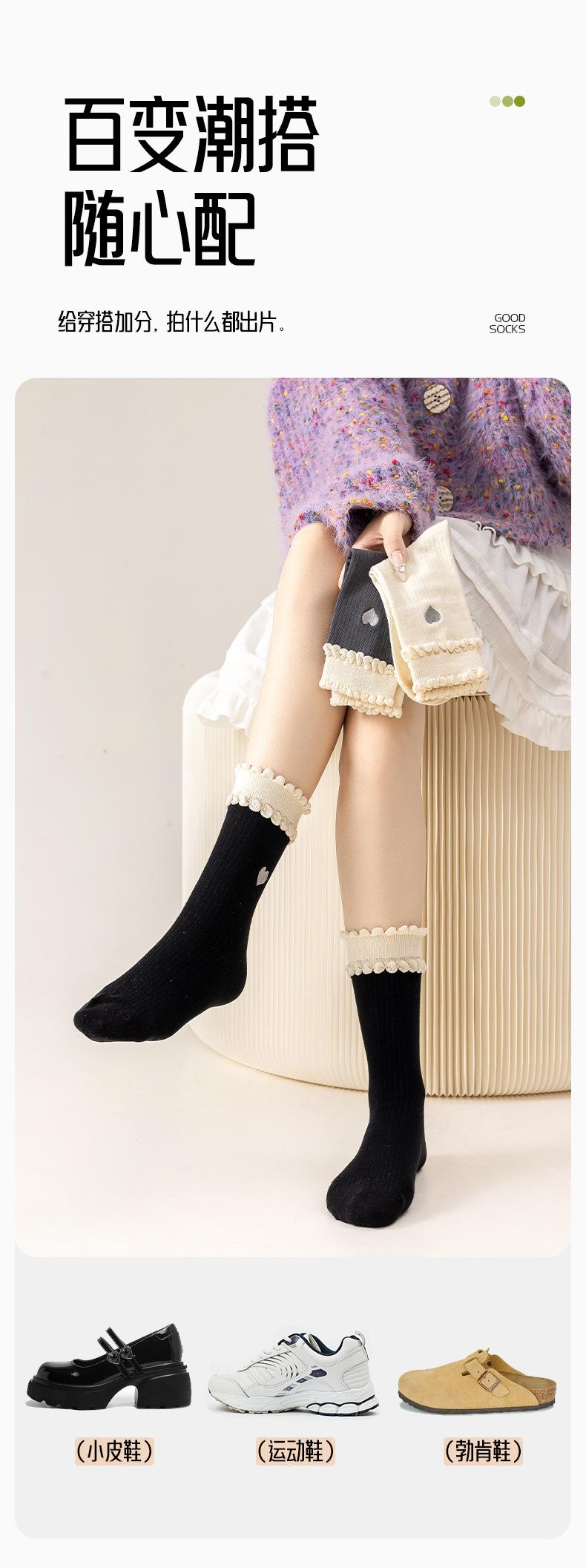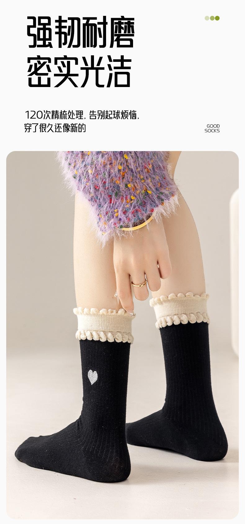 1141 Meias de comprimento médio com orelha de madeira Bordado infantil Amor Estilo japonês Balé Primavera e Outono Sapatos pequenos de couro Meias longas femininas