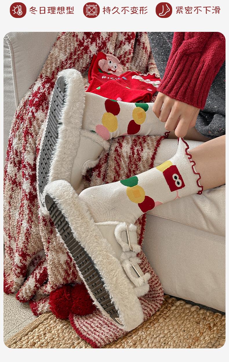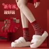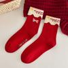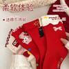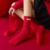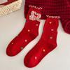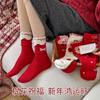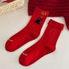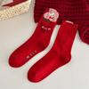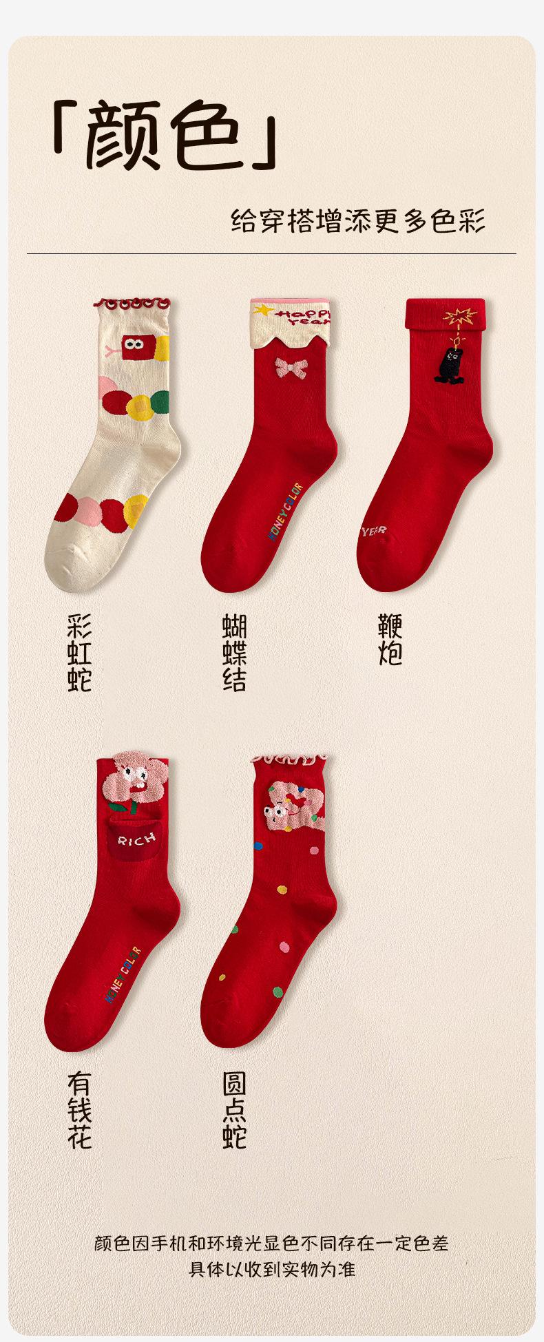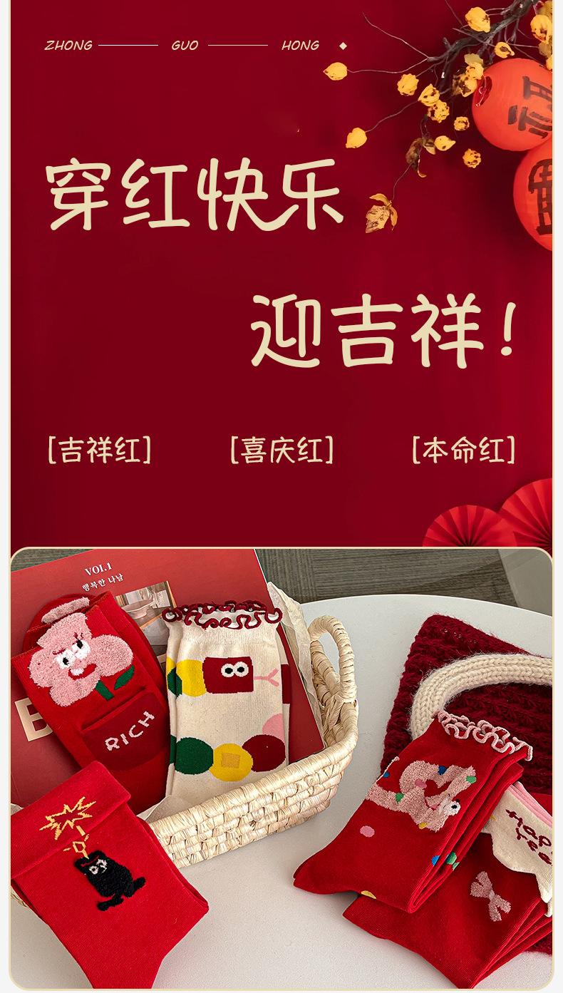 Meias vermelhas de ano novo femininas, desenho animado de outono e inverno, ano da cobra, meias de meio de ano, meias vermelhas de algodão puro festivas para casamento