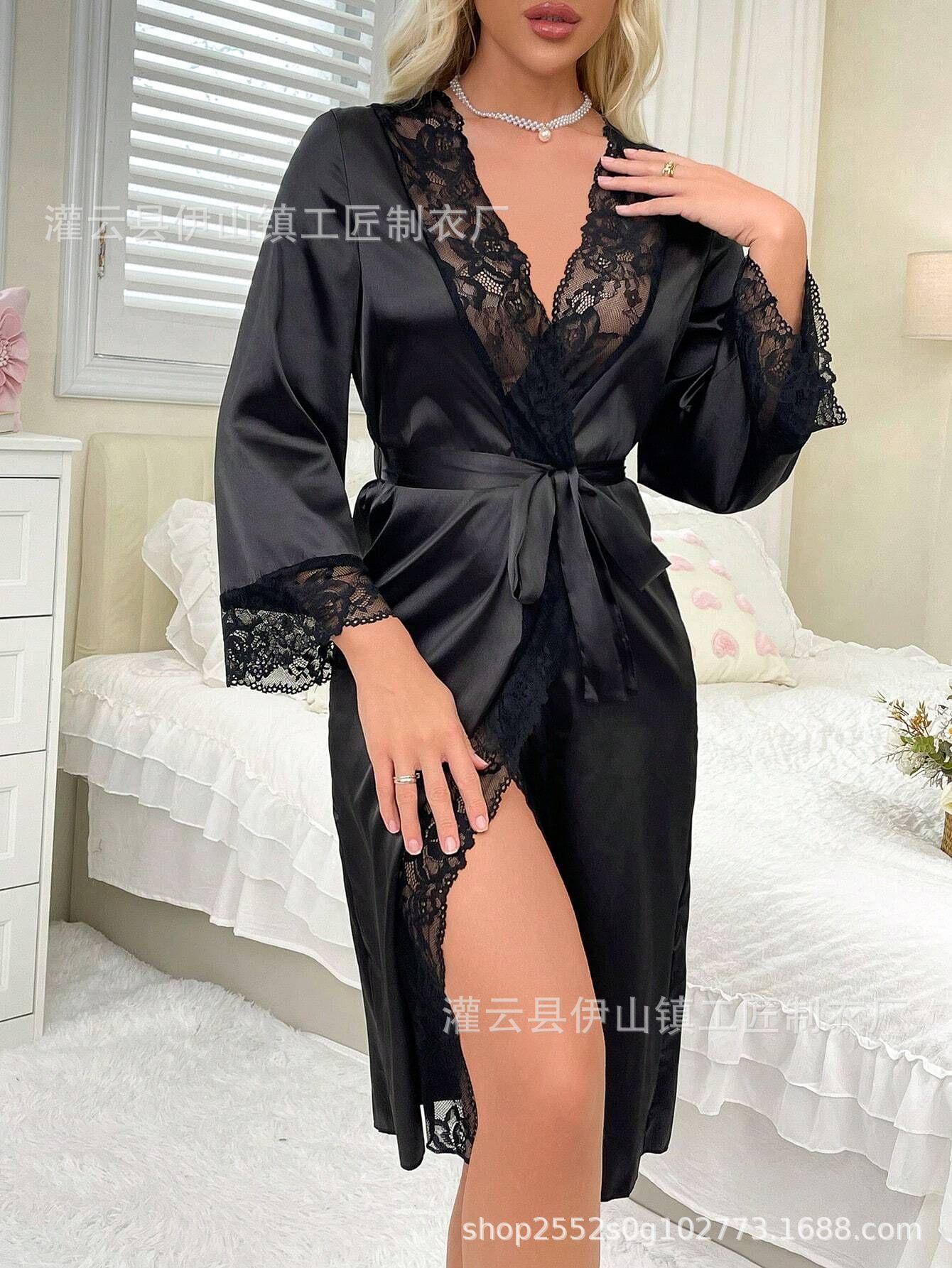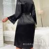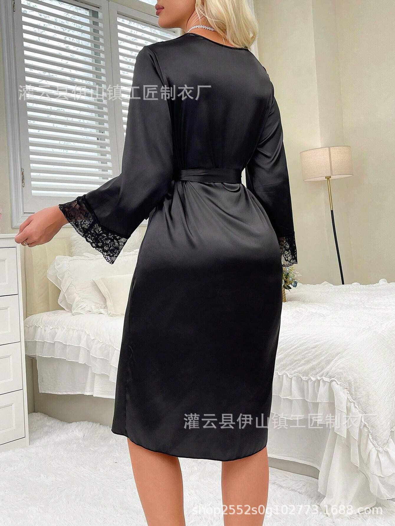 Robe de Cintura de Cetim de Verão para Exportação Europeia e Americana Sexy Sexy Casual Confortável Camisola Roupa de Casa Conjunto de Pijama para Mulheres
