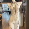 Diversão lingerie sexy pura perspectiva cheongsam quente estilo nacional uniforme tentação paixão lantejoulas terno 6403