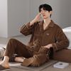 Pijama de lã coral espessado para outono e inverno, masculino, primavera e outono, forrado com lã, manga comprida, flanela, roupa quente para casa, tamanho grande