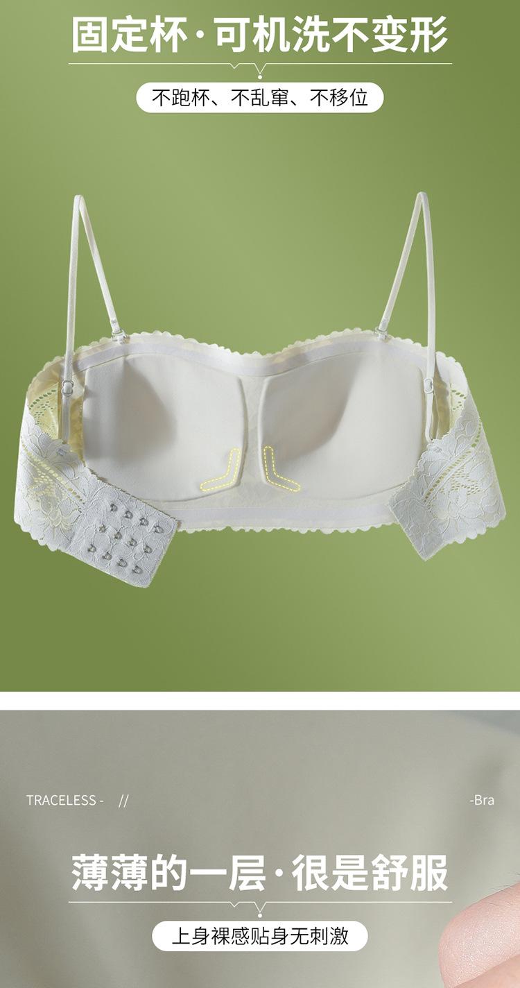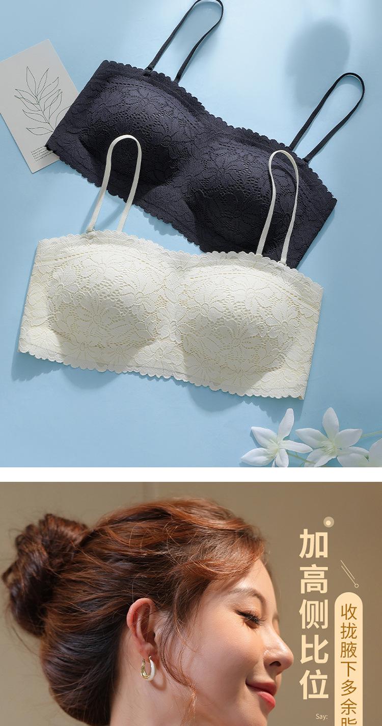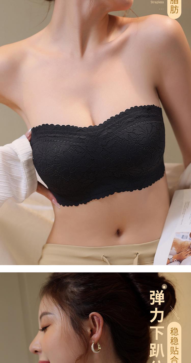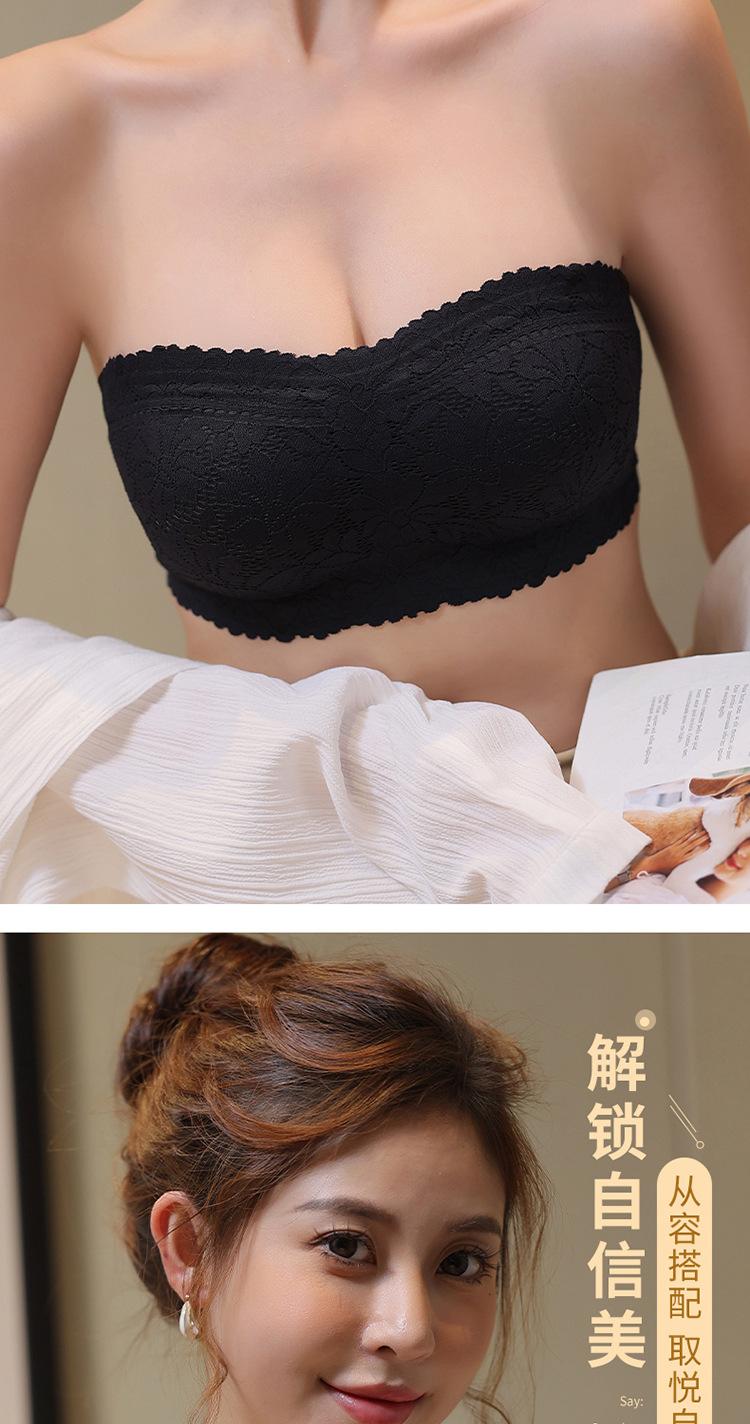 Roupa íntima sem alças feminina antiderrapante push up peito pequeno tubo fino verão top anti-exposição sutiã sem fio renda peito envolto