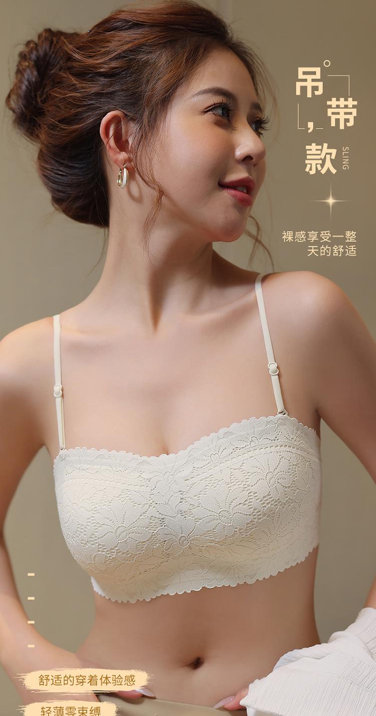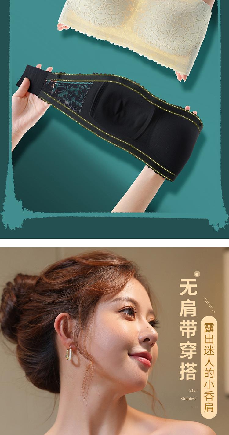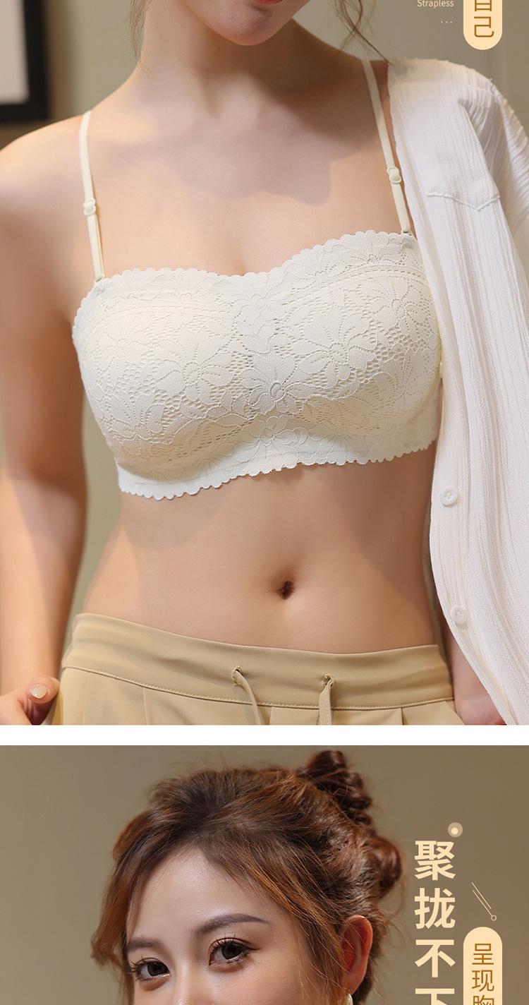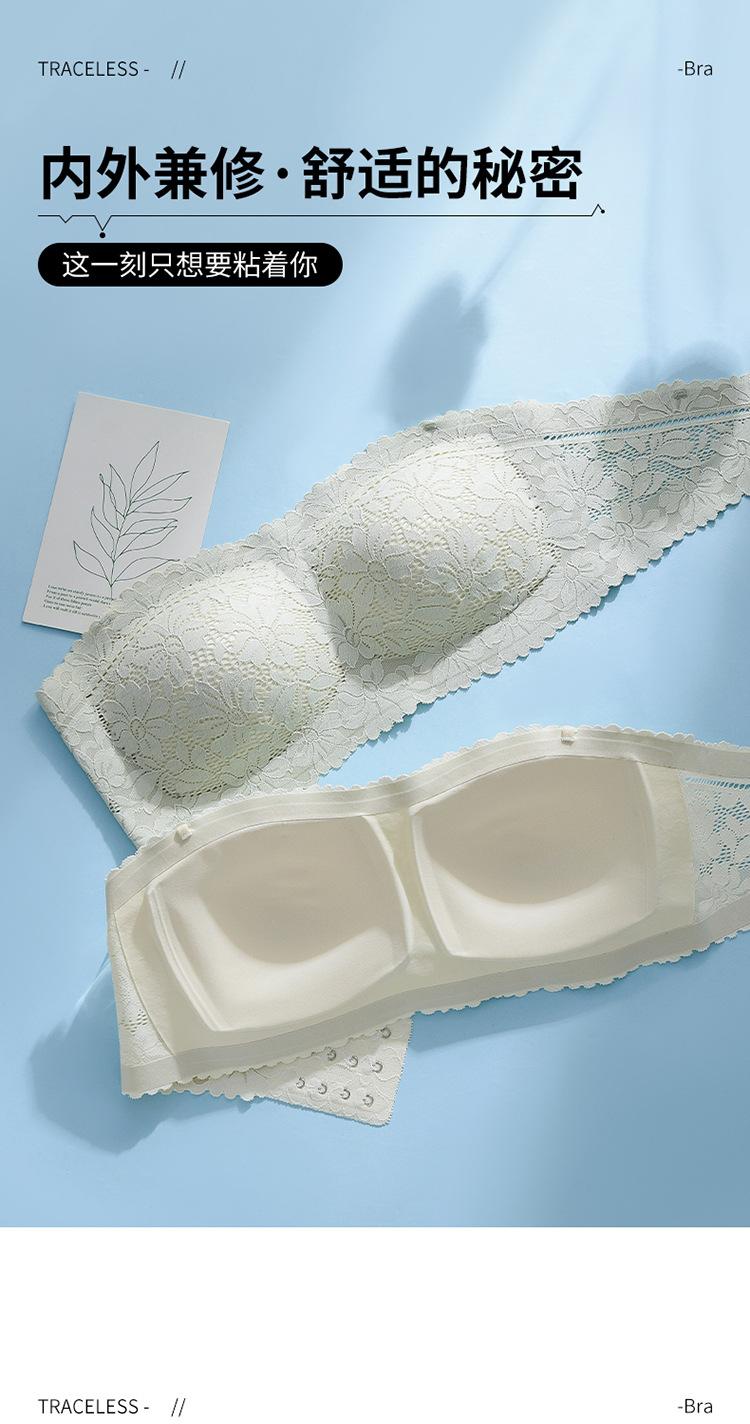 Roupa íntima sem alças feminina antiderrapante push up peito pequeno tubo fino verão top anti-exposição sutiã sem fio renda peito envolto