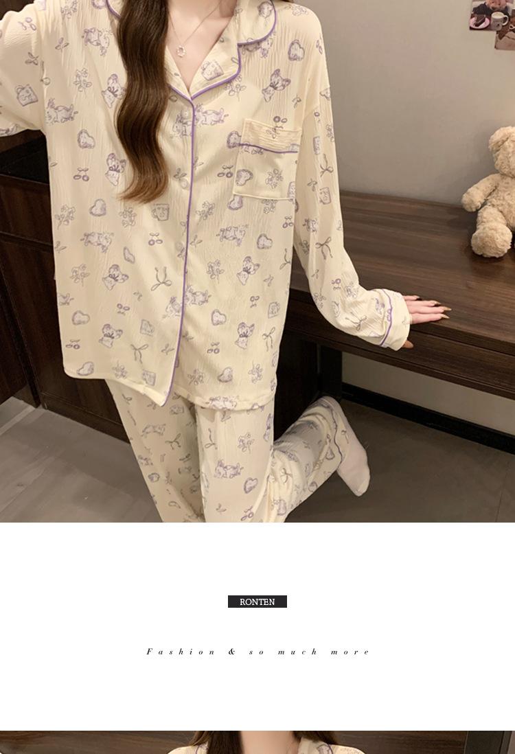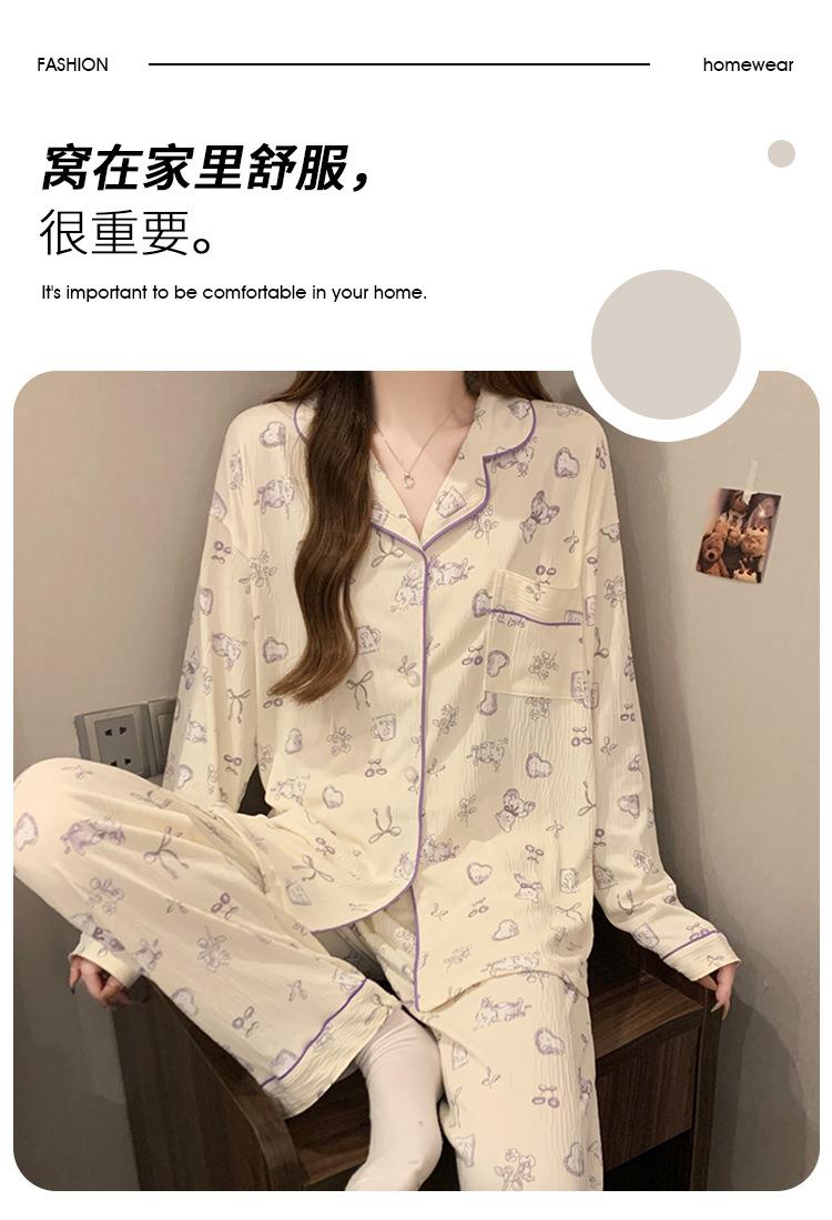 Compre Pijama feminino de primavera e outono, manga longa, novo laço, coelho, alta qualidade, roupas confortáveis para casa, pode ser usado no atacado no atacado no Joom.pro