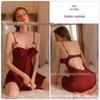 Nova saia de cetim francês de renda pendurada primavera e verão puro vento cinto almofada no peito pijamas roupas de casa pijamas finos para mulheres