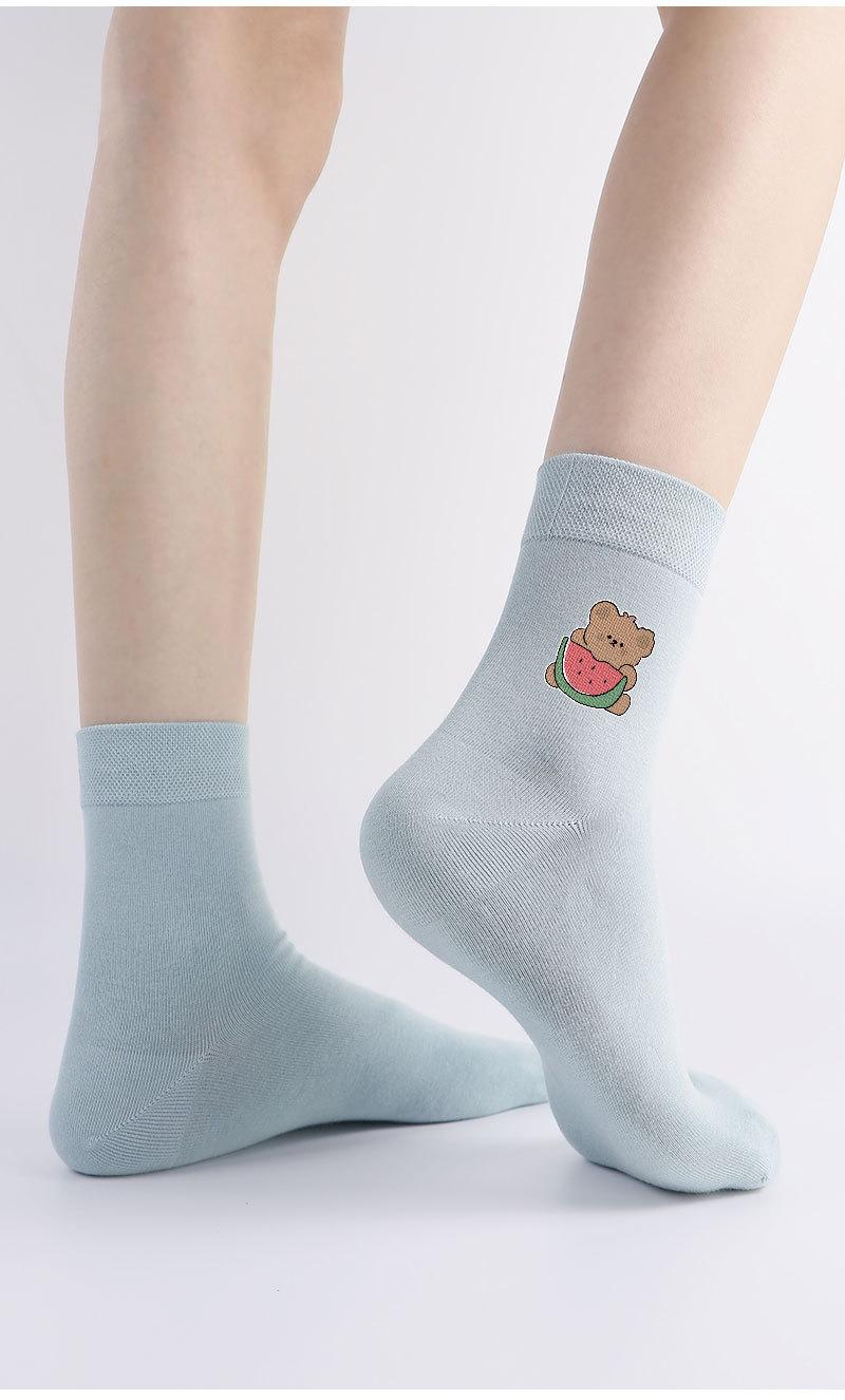 Novo estilo coreano meias femininas estampadas de tubo longo outono e inverno respirável suor absorvente casual esportes meias femininas algodão puro pés desossados