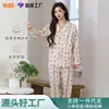 Roupa de Maternidade de Gaze de Algodão Puro para Primavera e Outono, Nova Gaze de Camada Dupla, Ajustável durante a Gravidez, Conjunto de Pijama para Amamentação Pós-Parto