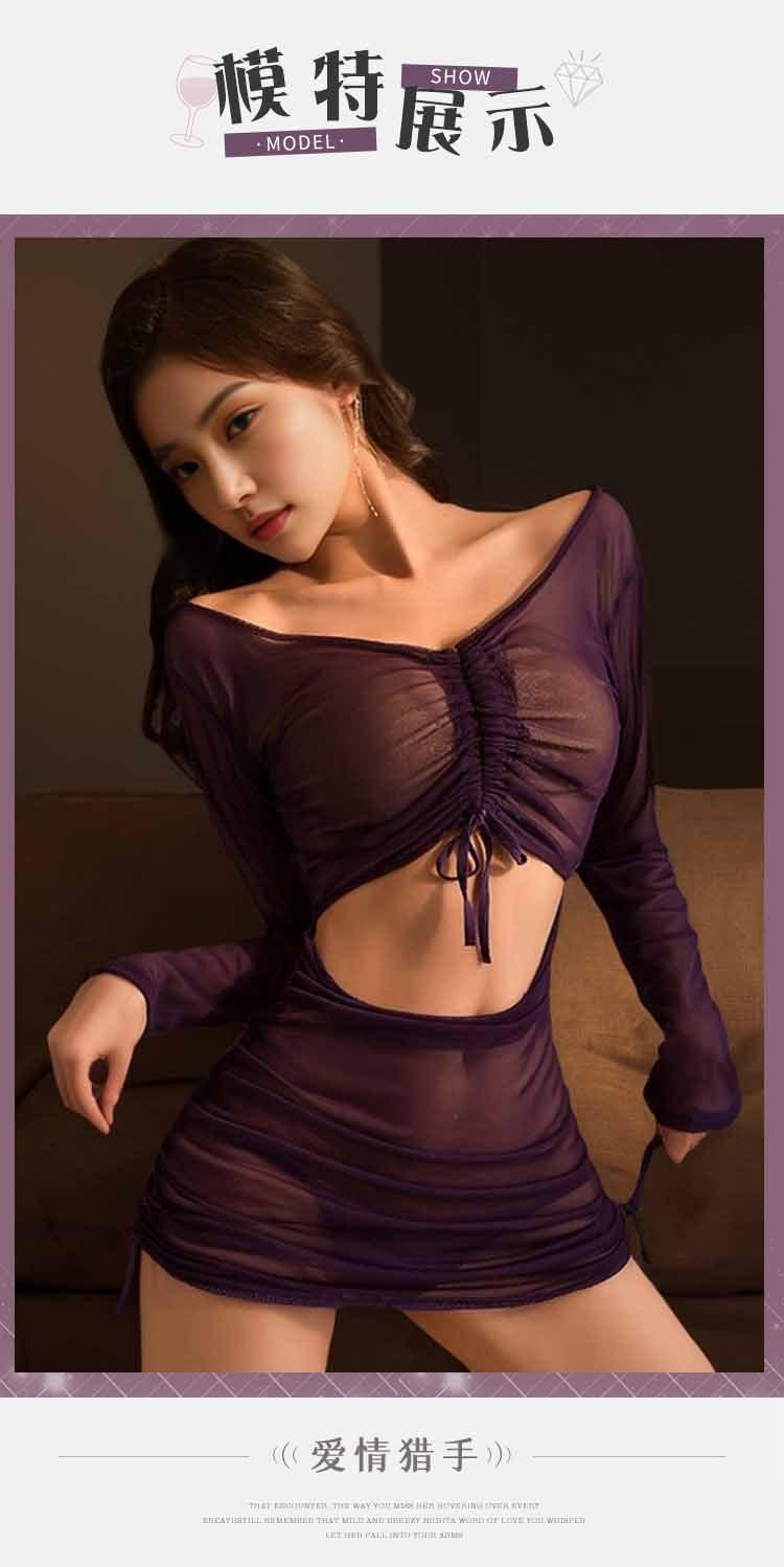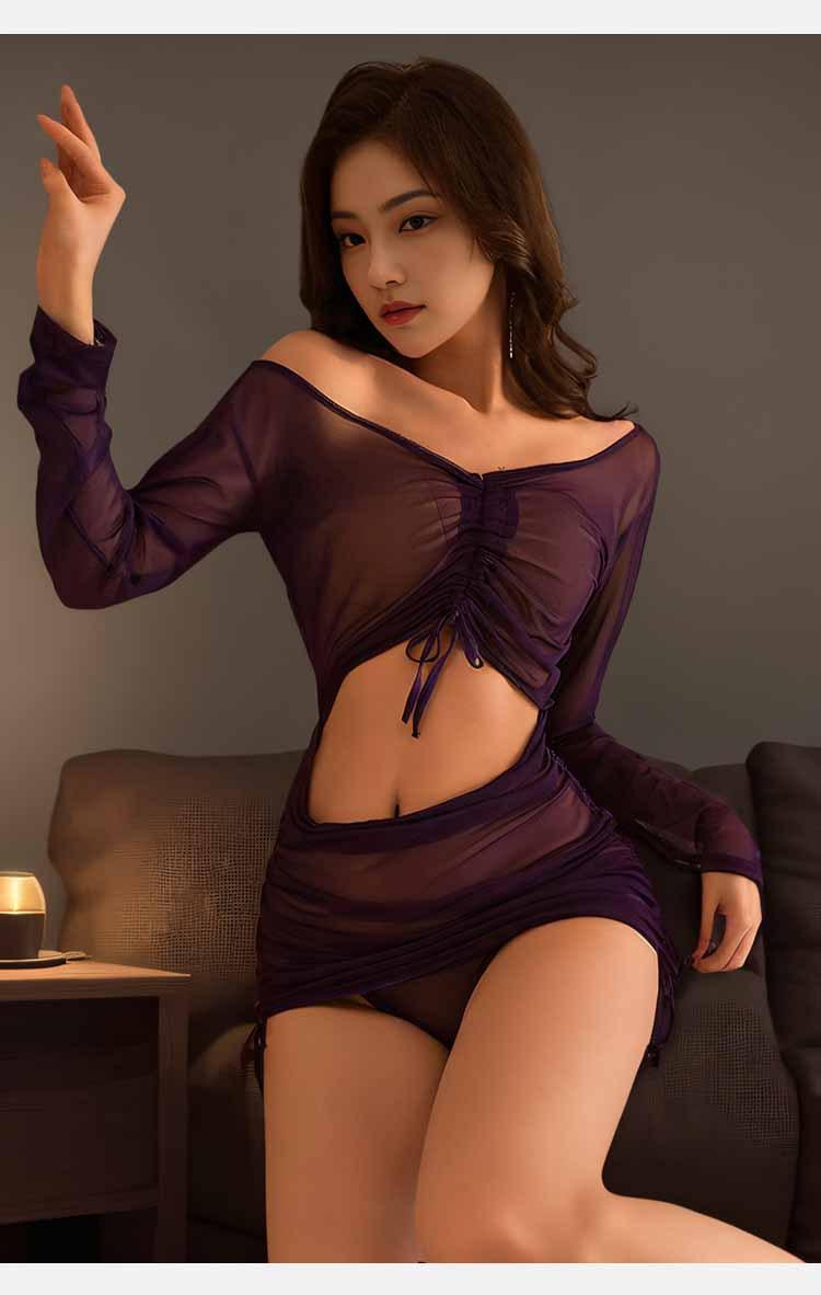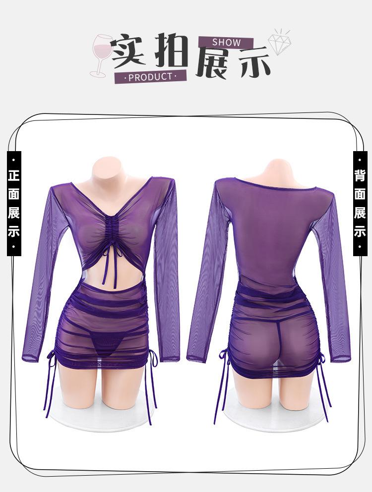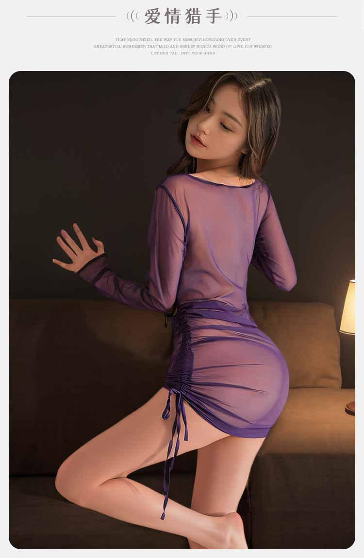 Lingerie Sexy Feminina Perspectiva Sexy Manga Longa Envoltório de Quadril Vestido de Malha Paixão Uniforme Quente Tentação Pijama terno