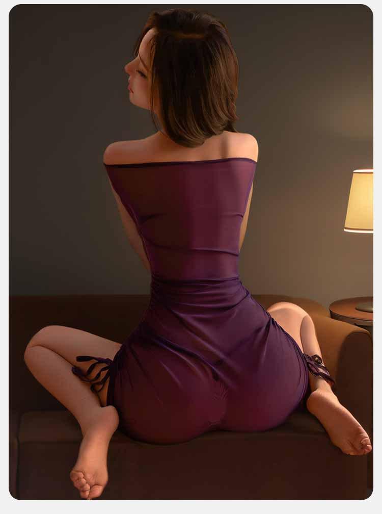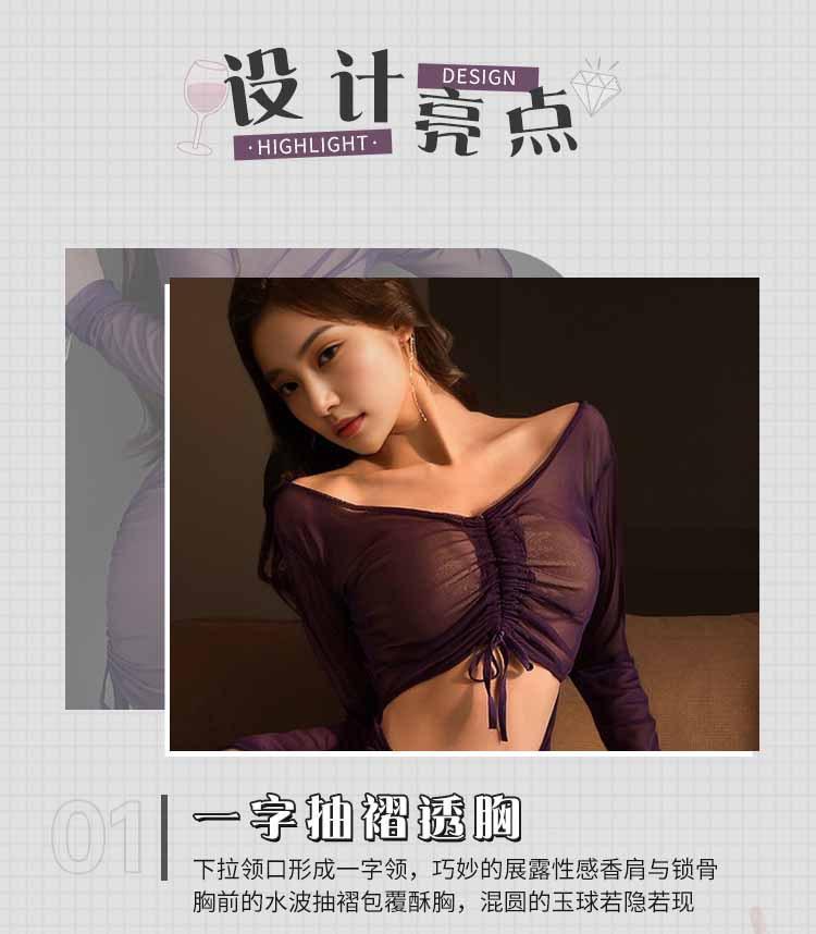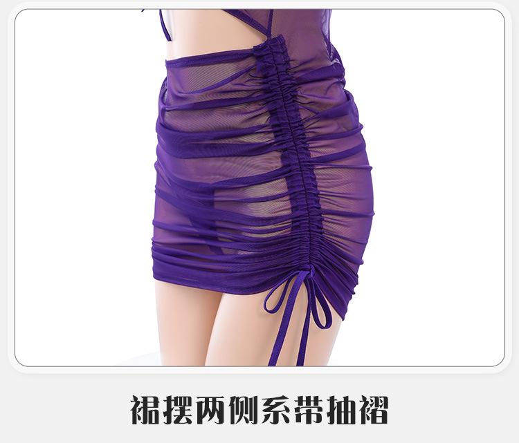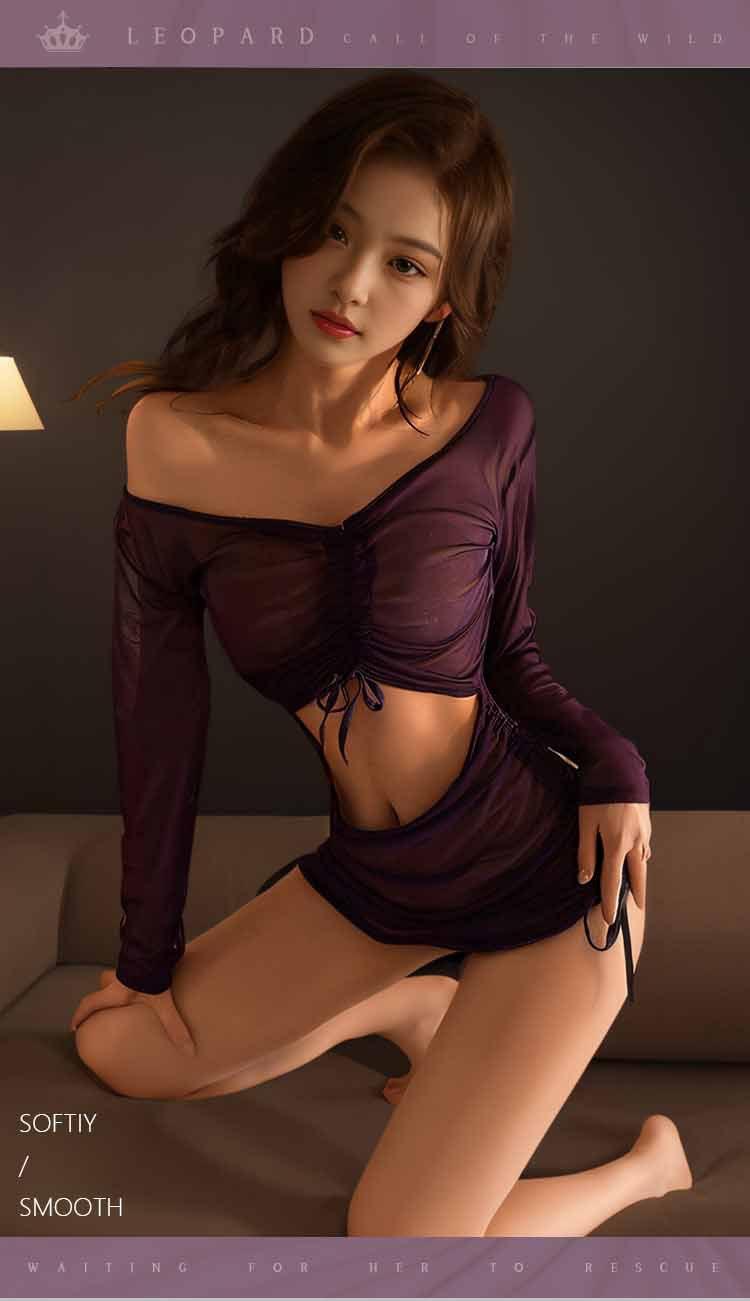 Lingerie Sexy Feminina Perspectiva Sexy Manga Longa Envoltório de Quadril Vestido de Malha Paixão Uniforme Quente Tentação Pijama terno