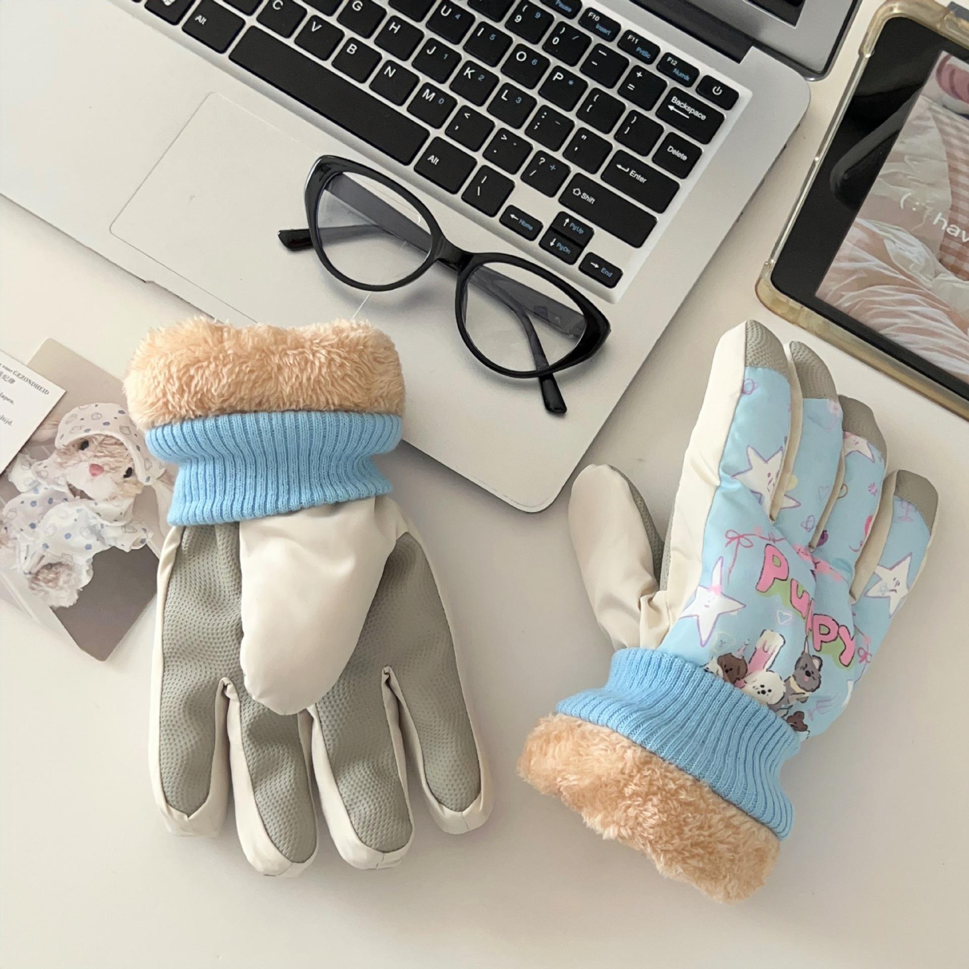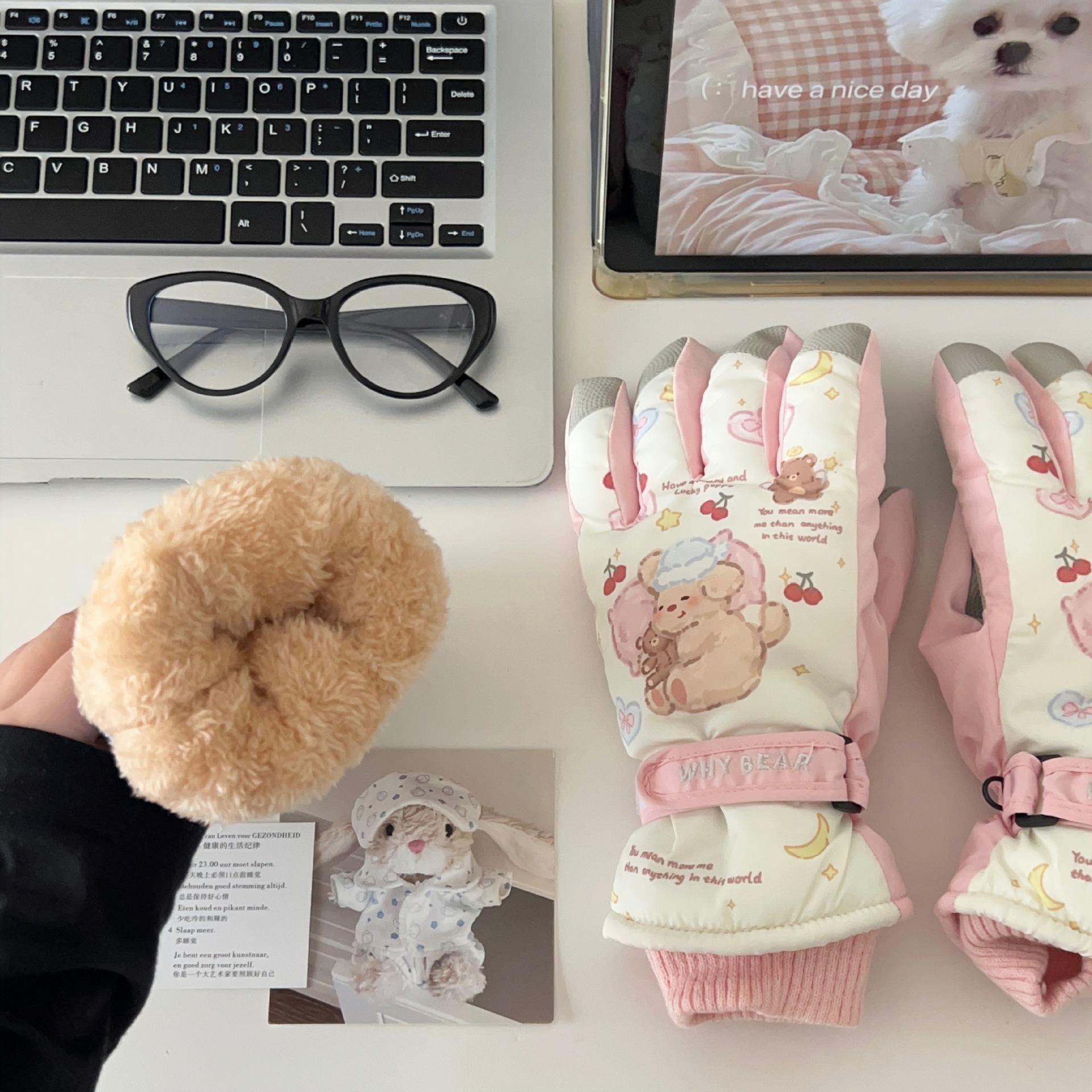 Luvas de esqui de inverno necessárias, forro de lã de urso, ciclismo ao ar livre, à prova de vento, à prova d'água, à prova de frio, luvas quentes com tela sensível ao toque