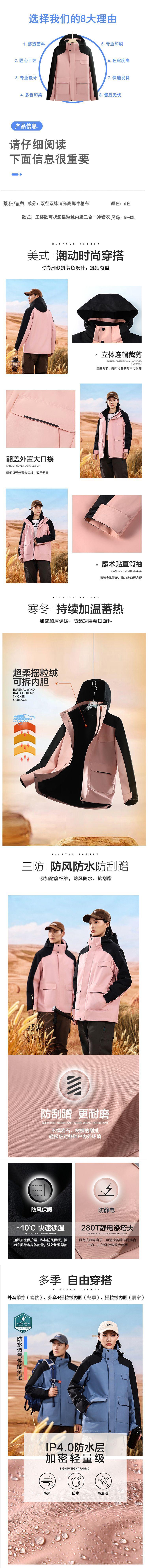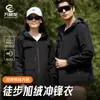 Jaqueta de assalto três em um de lã polar destacável para trabalho, forro duplo de lã polar espessado, jaqueta de montanhismo com logotipo impresso
