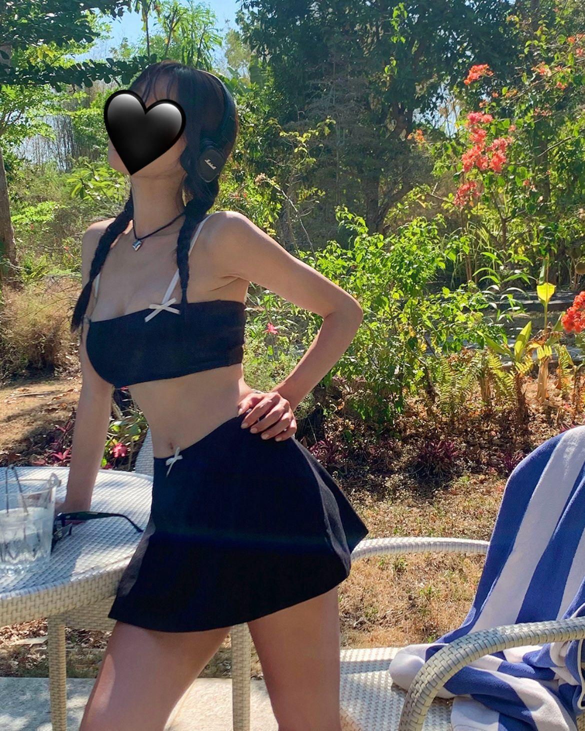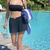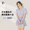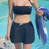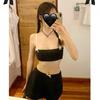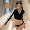 Novo estilo coreano simples retro cor contraste ombro cor sólida magro split maiô feminino primavera quente maiô feminino conservador verão