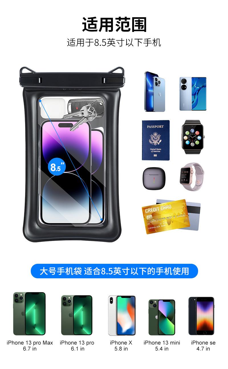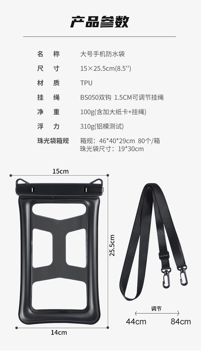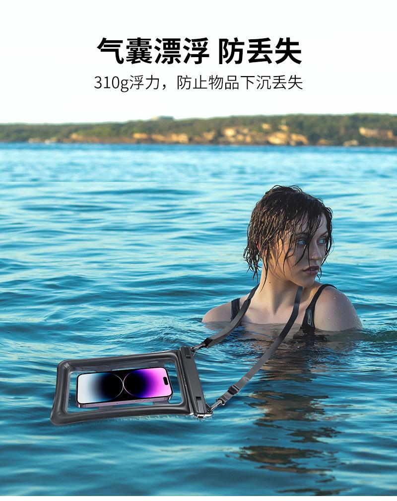 Nova Bolsa de Celular Impermeável Transfronteiriça para Atividades ao Ar Livre como Natação, Rafting e Camping, Capa de Celular Impermeável Estilo Airbag para Pendurar no Pescoço de 8,5 polegadas