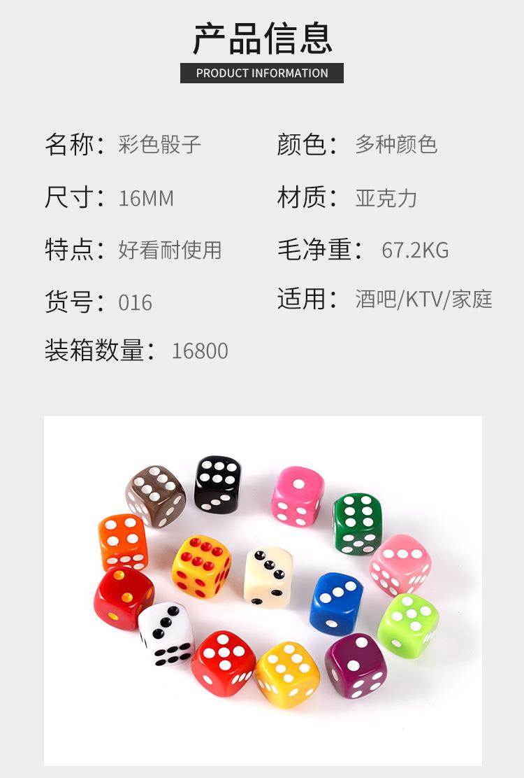 Dados 16mm Dados Acrílicos Peças de Xadrez Fichas Dados Coloridos Jogo de Tabuleiro Brinquedo Acessórios Atacado Transfronteiriço Amazon