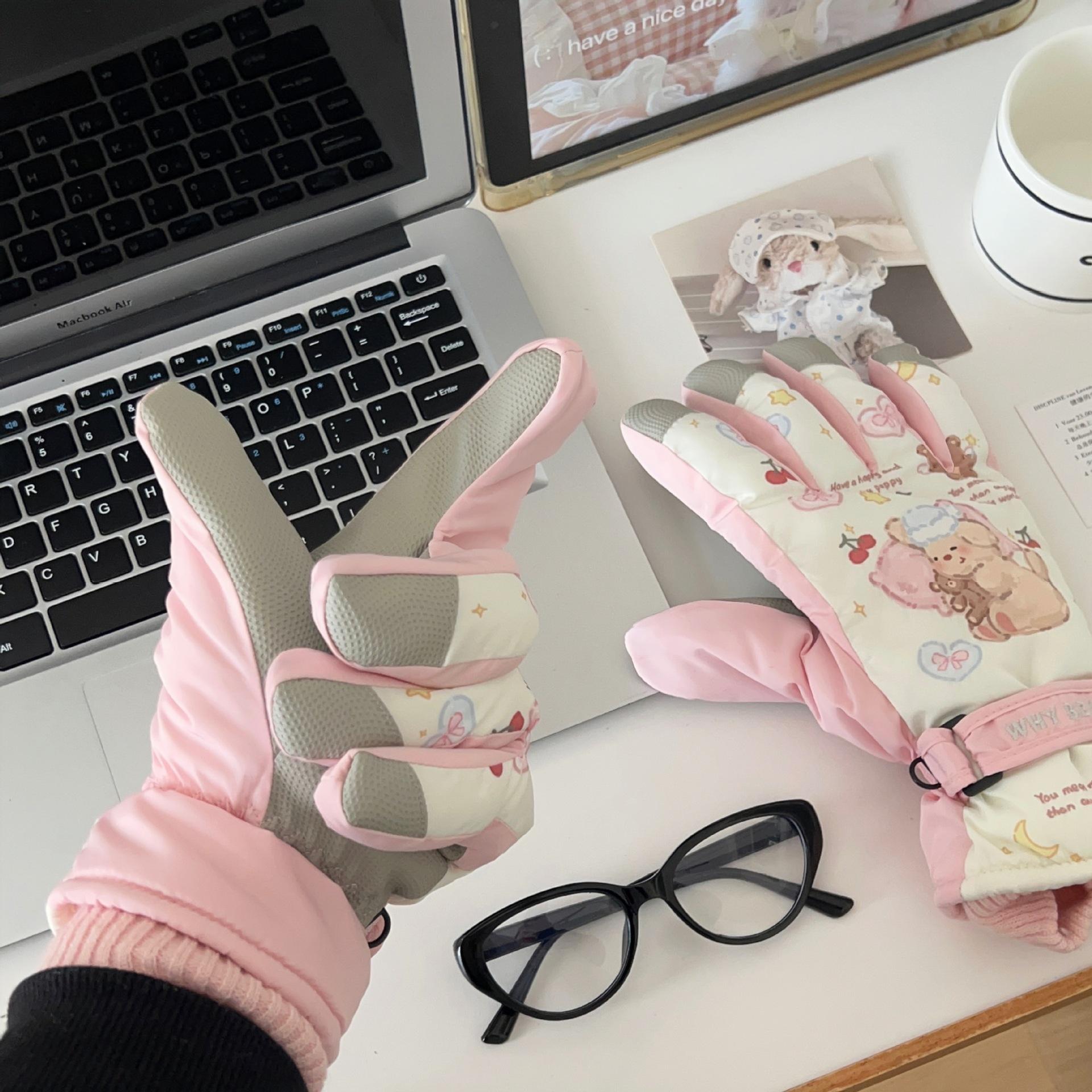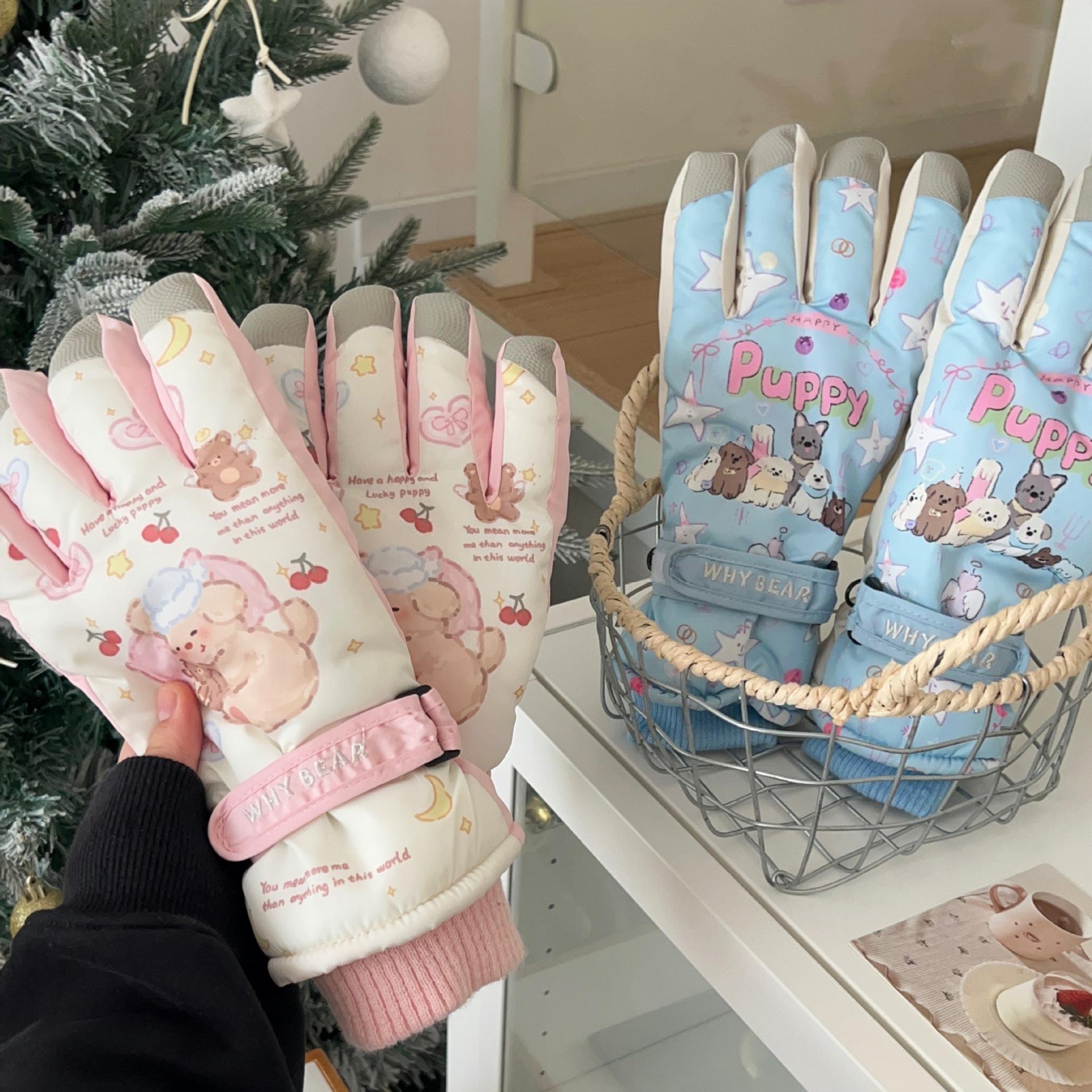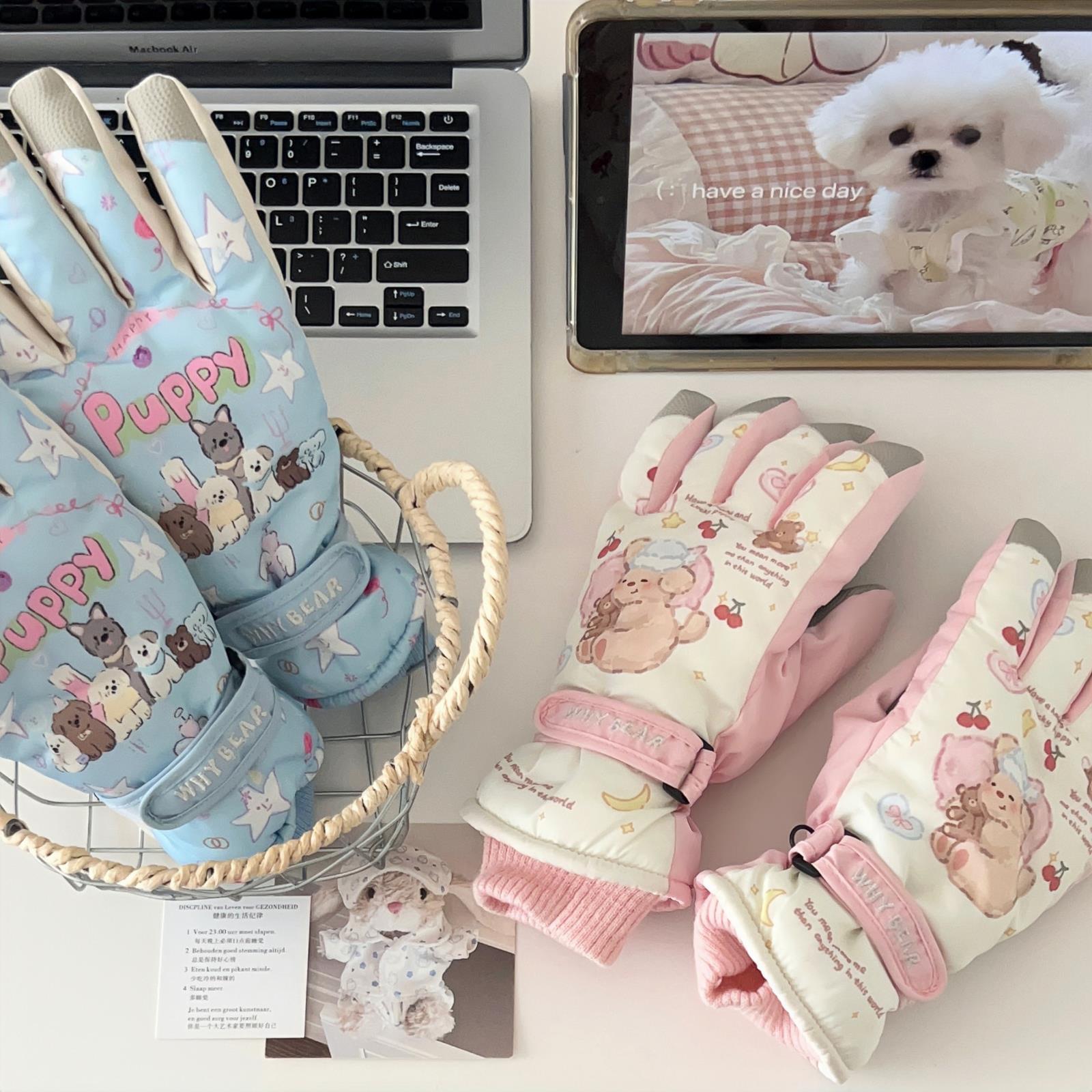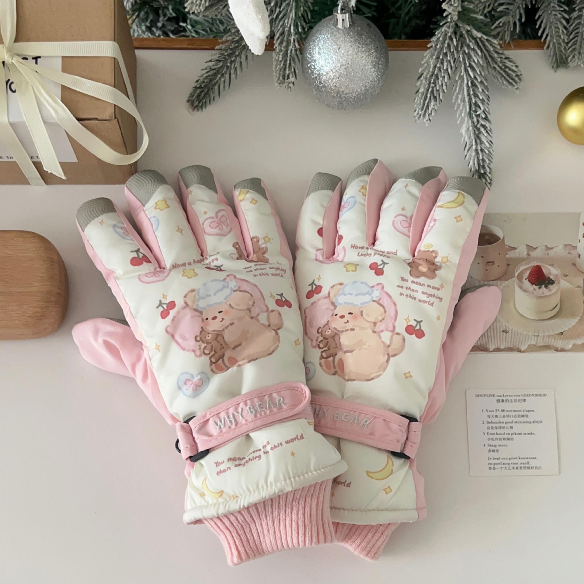 Luvas de esqui de inverno necessárias, forro de lã de urso, ciclismo ao ar livre, à prova de vento, à prova d'água, à prova de frio, luvas quentes com tela sensível ao toque