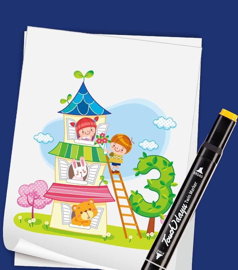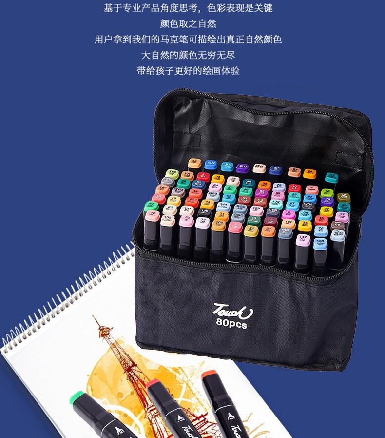 Conjunto de Marcadores para Pintura ao Toque Colorido Design de Ponta Dupla Específico para Estudantes Animação Marcador à Base de Álcool e Óleo