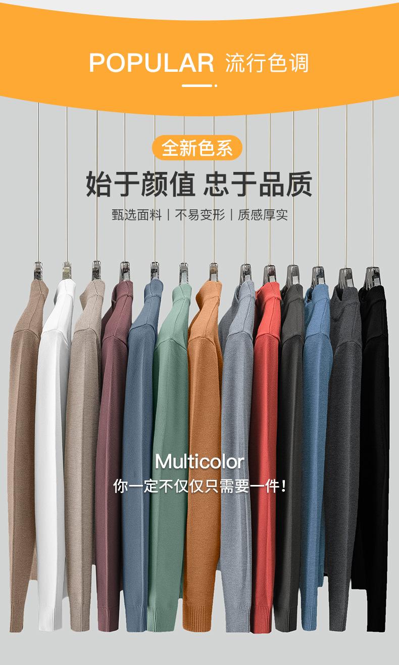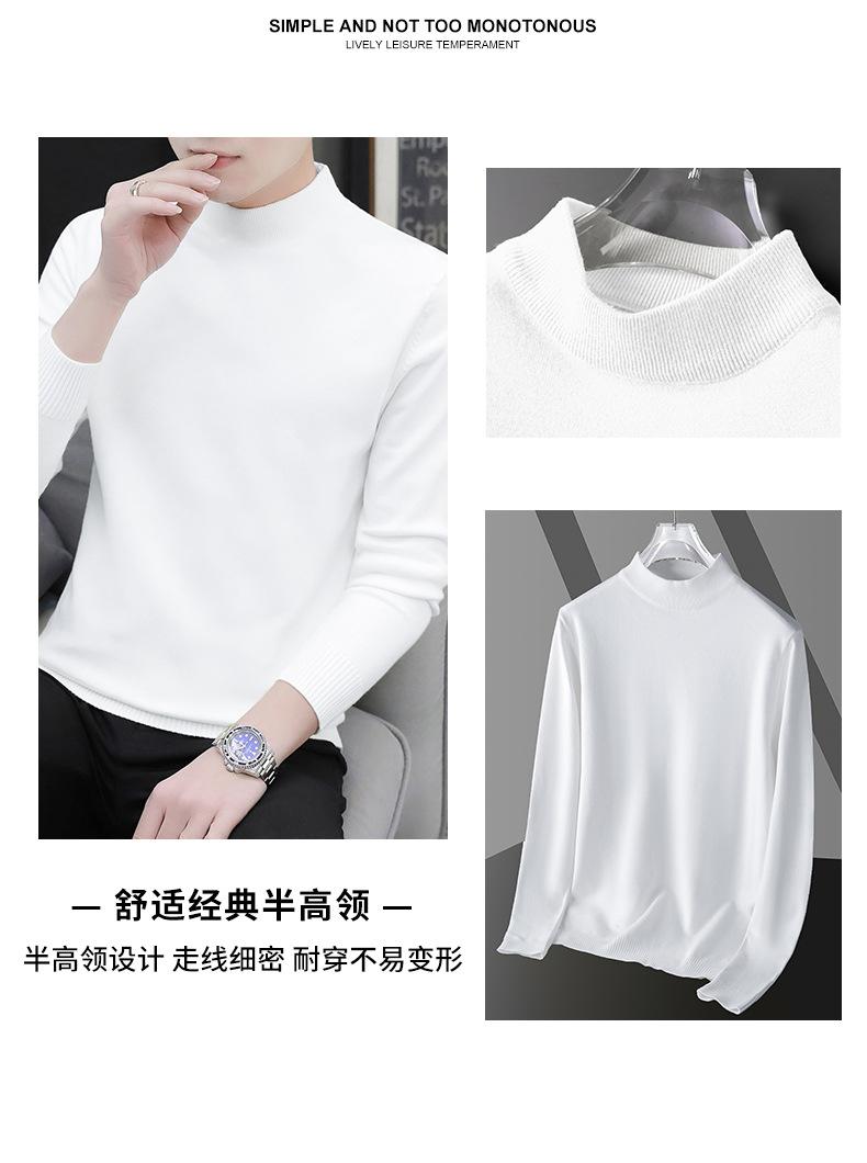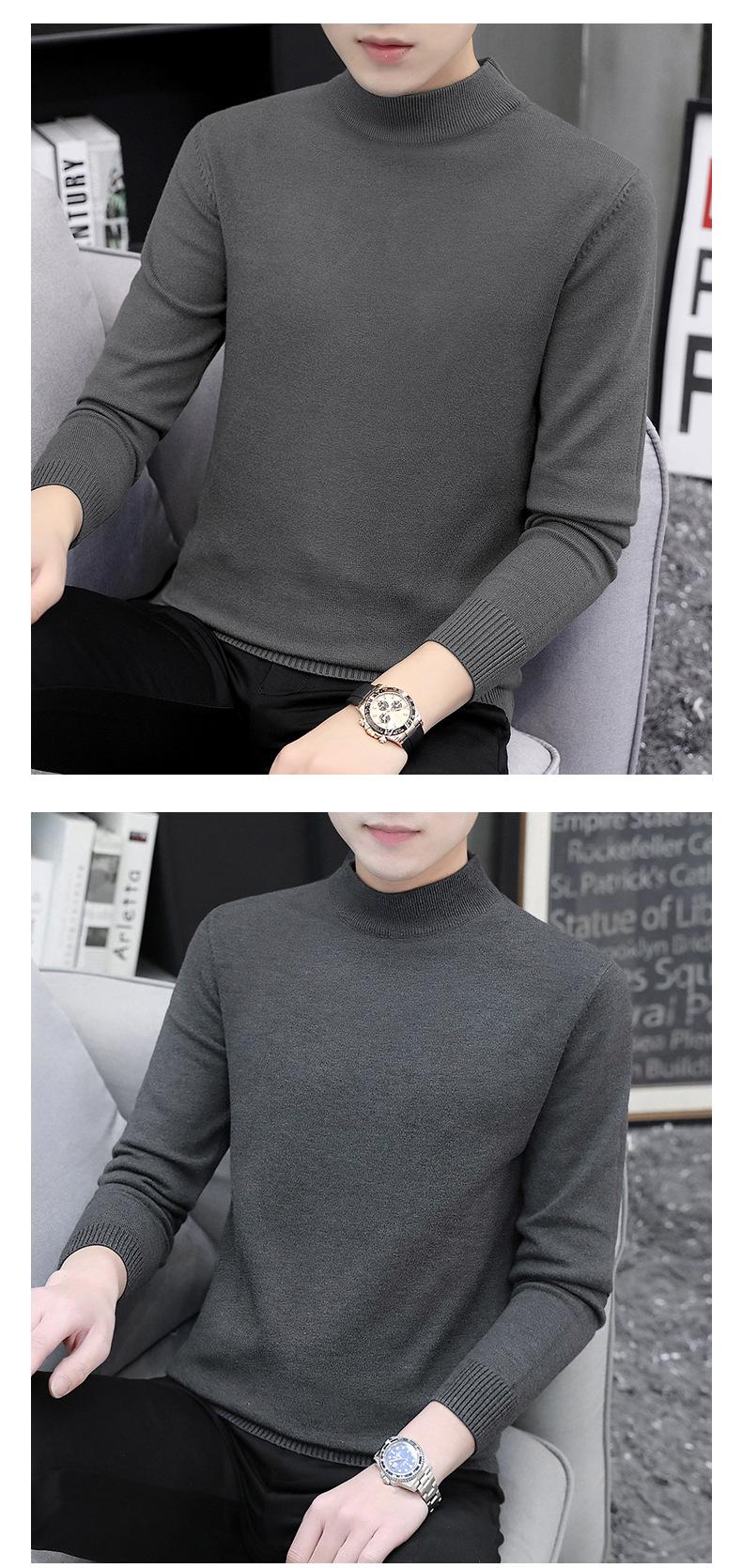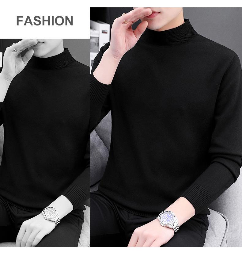 Suéter de gola alta masculina, outono e inverno, top de malha, base de gola média, suéter masculino, personalidade da moda