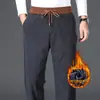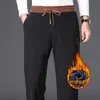 Calças de cordão elástico masculinas de outono e inverno Calças de veludo cotelê Calças esportivas Calças casuais grossas com forro de lã soltas