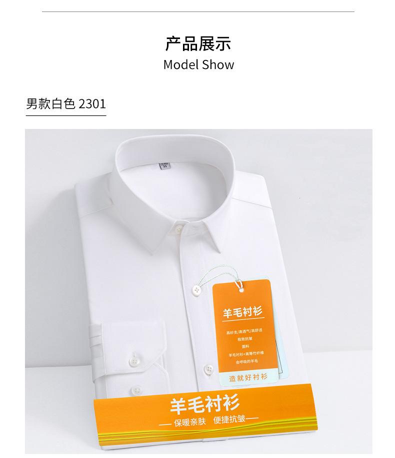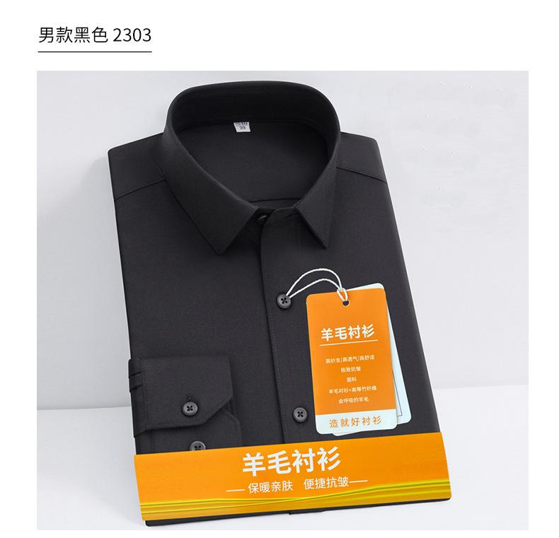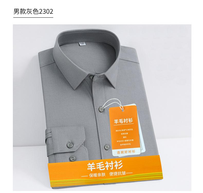 Camisa de lã para primavera e outono, camisa masculina de manga comprida, modal, espessada, casual para negócios, agradável à pele, quente, sem passar a ferro, camisa com rugas