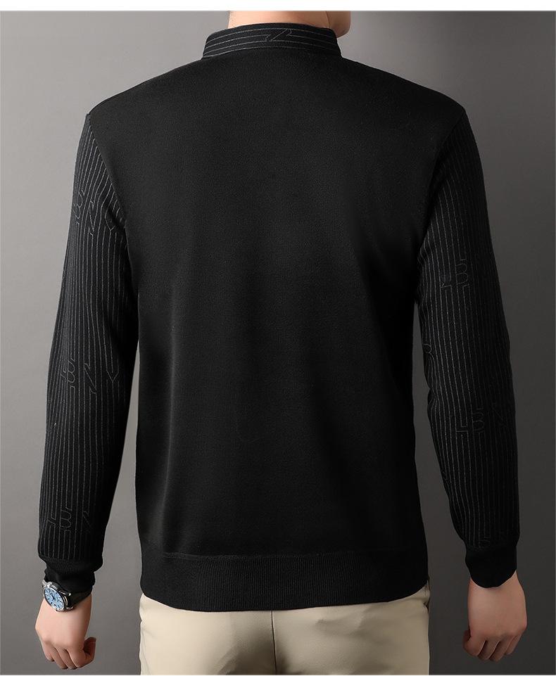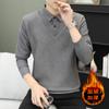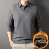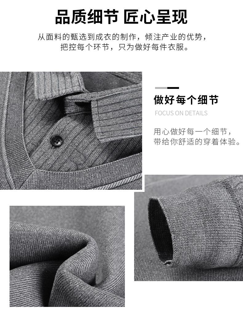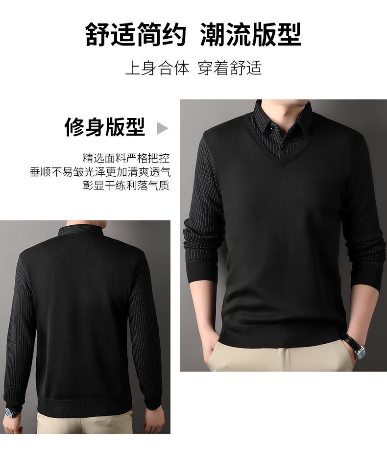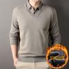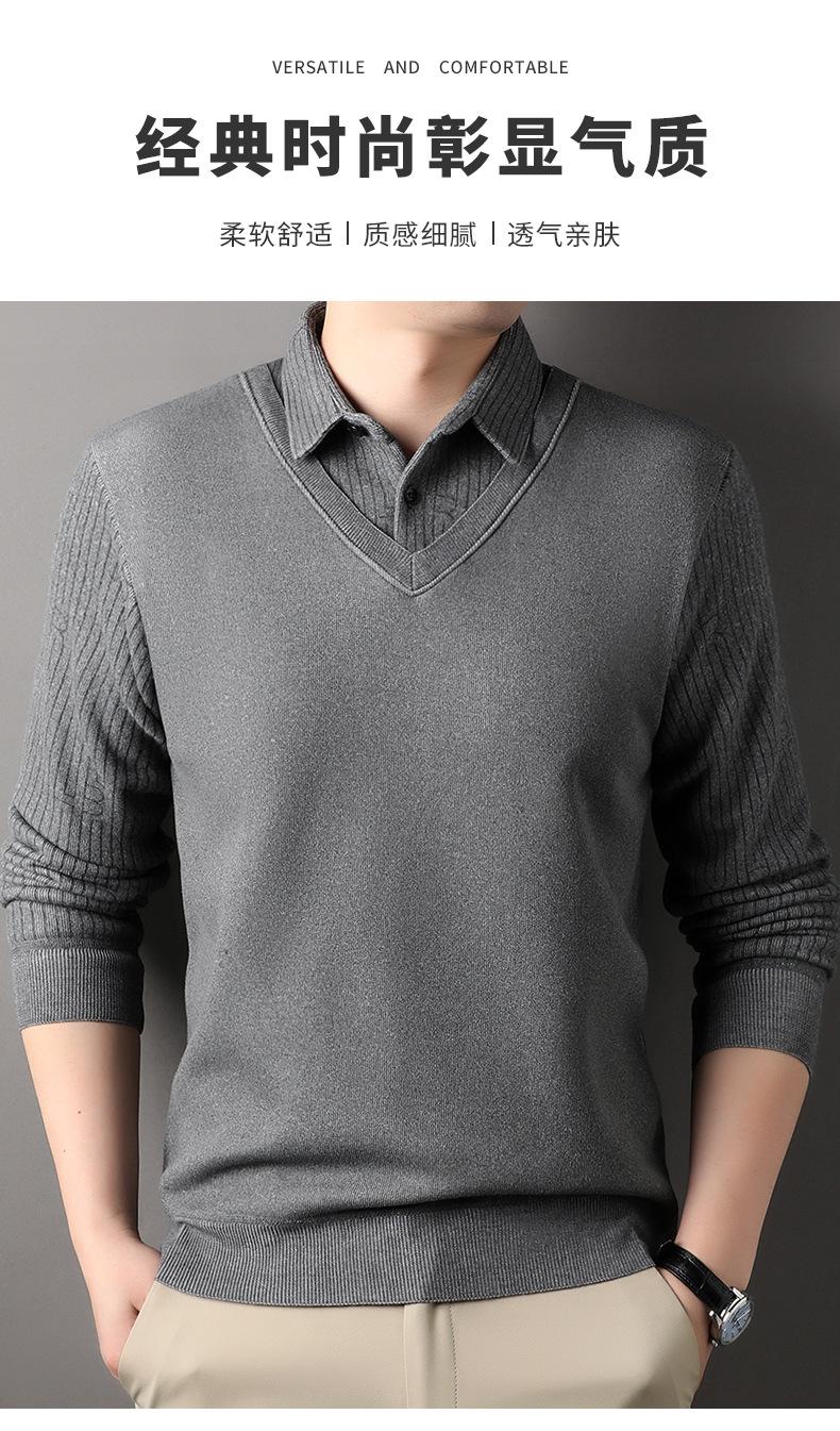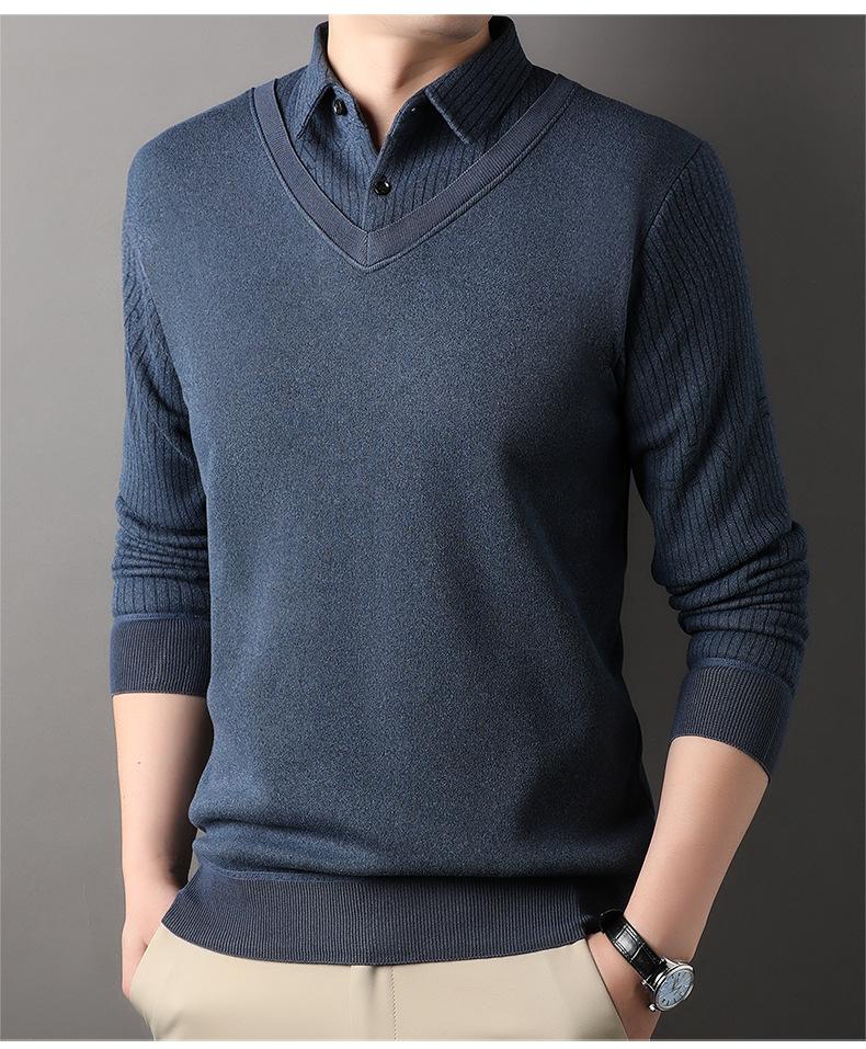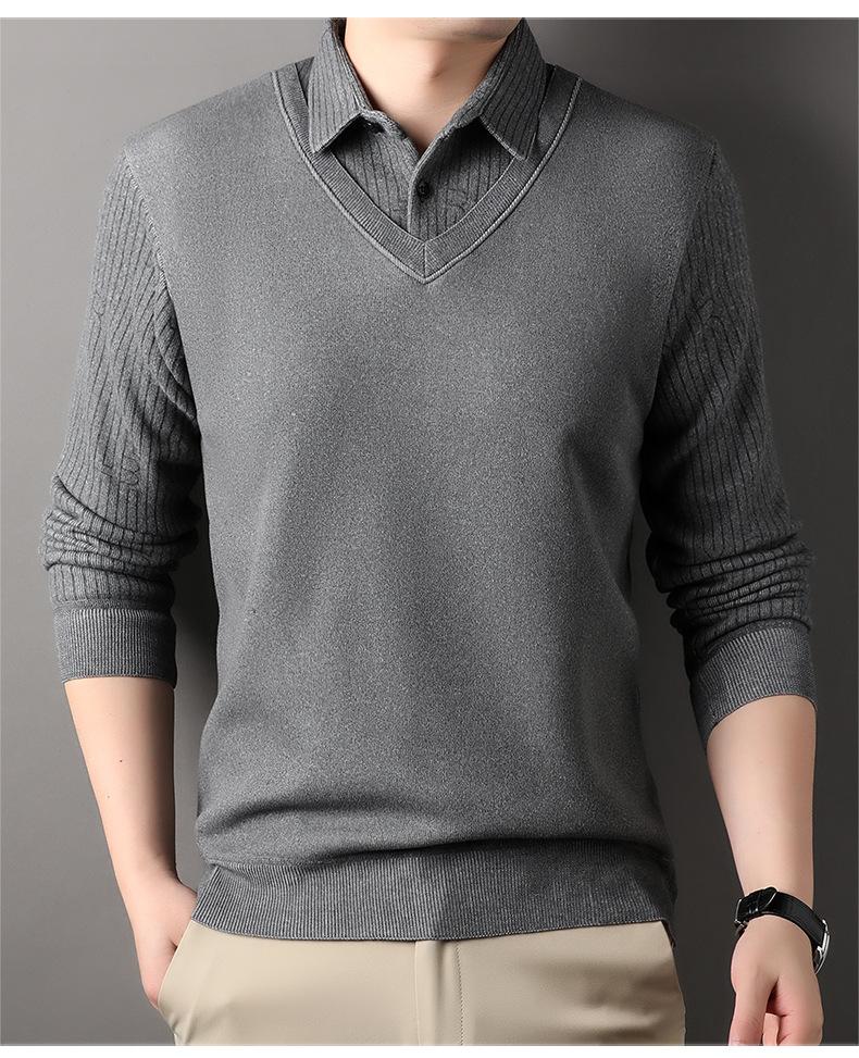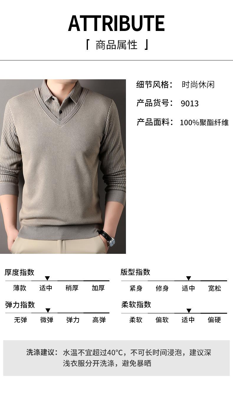 Suéter falso de duas peças masculino outono e inverno suéter de malha quente listrado gola de camisa uso interno uso externo suéter casual base camisa