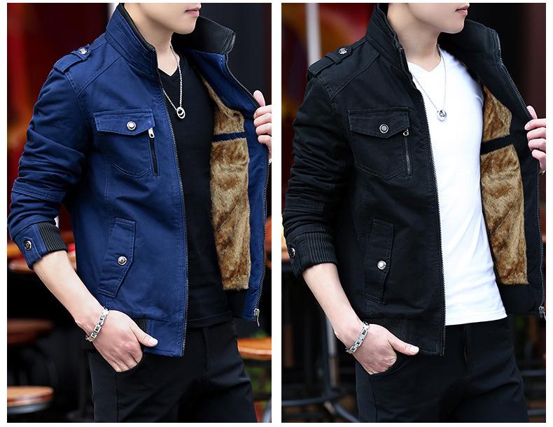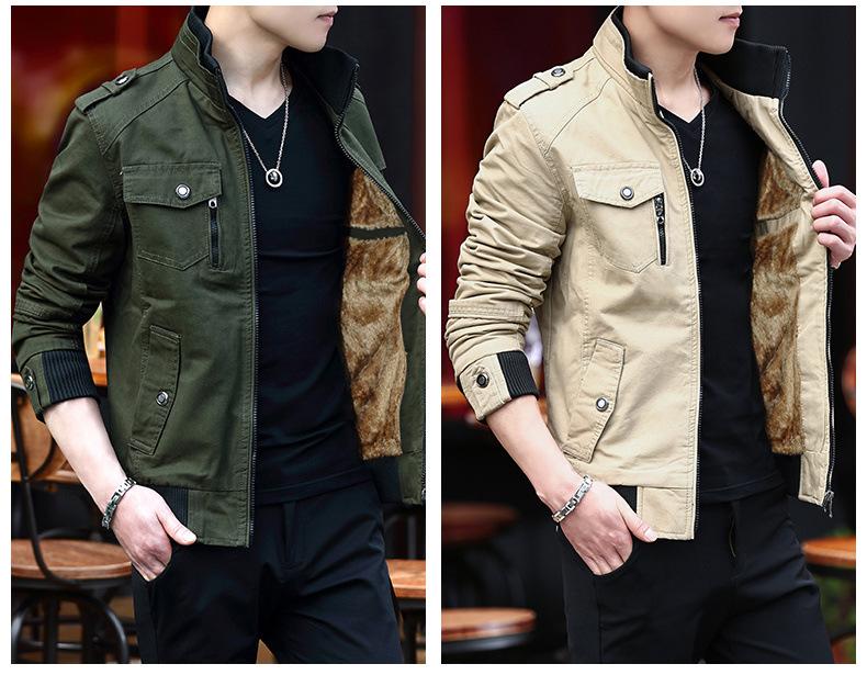 Jaqueta de primavera e outono masculina com forro de lã espessada, casaco coreano moderno e casual