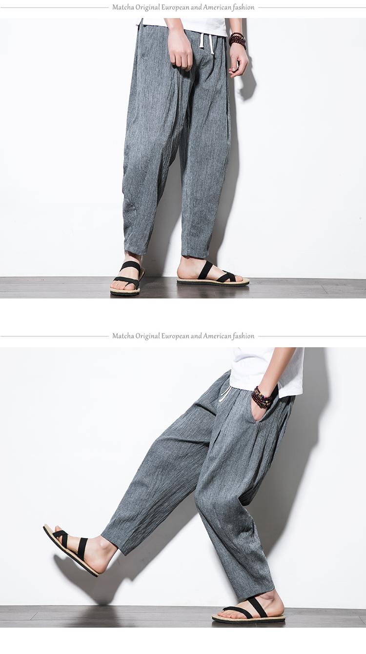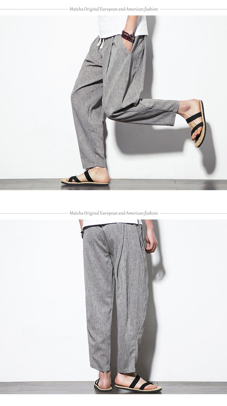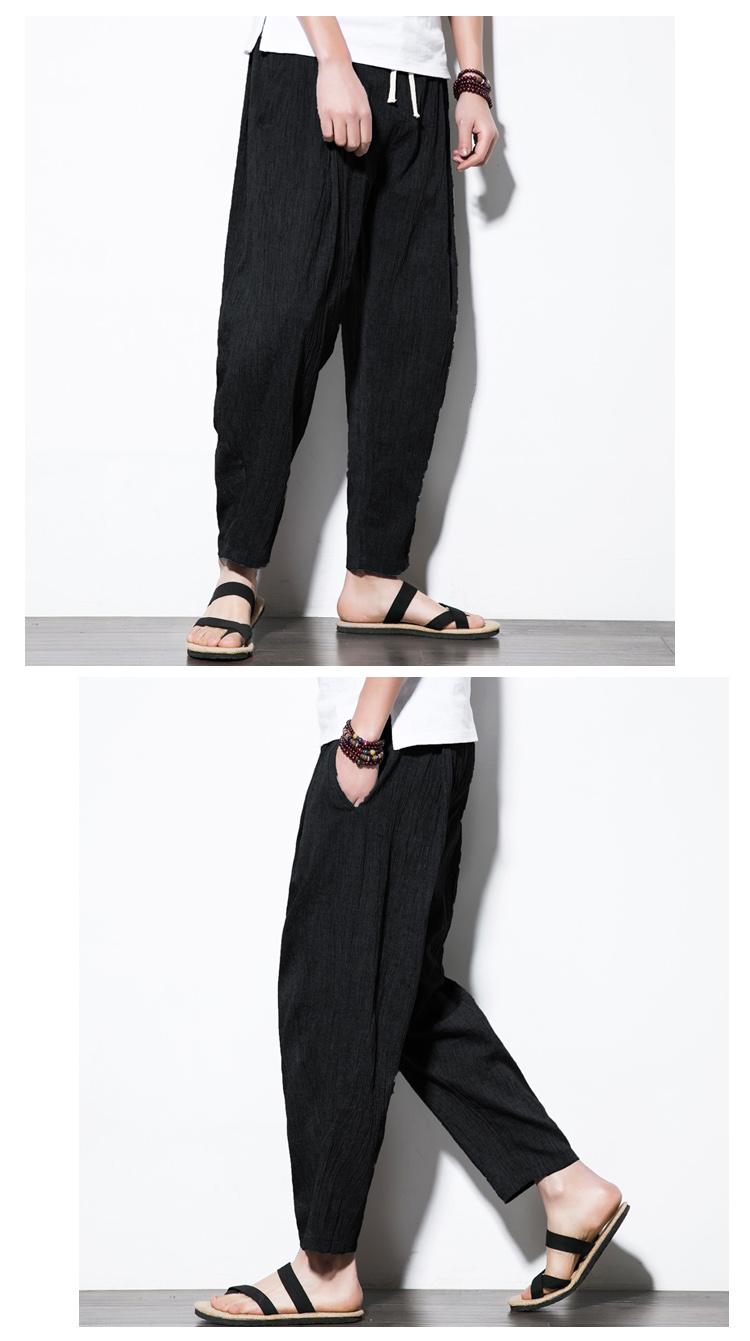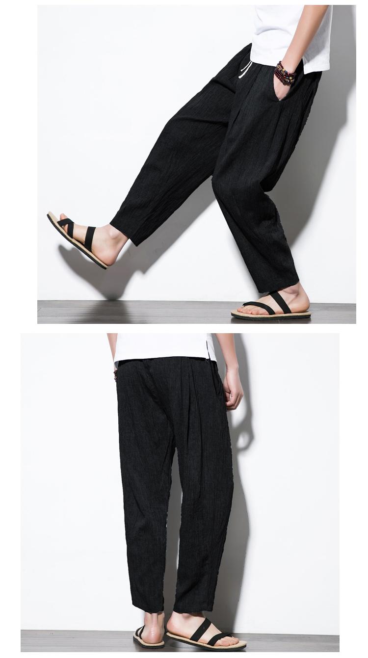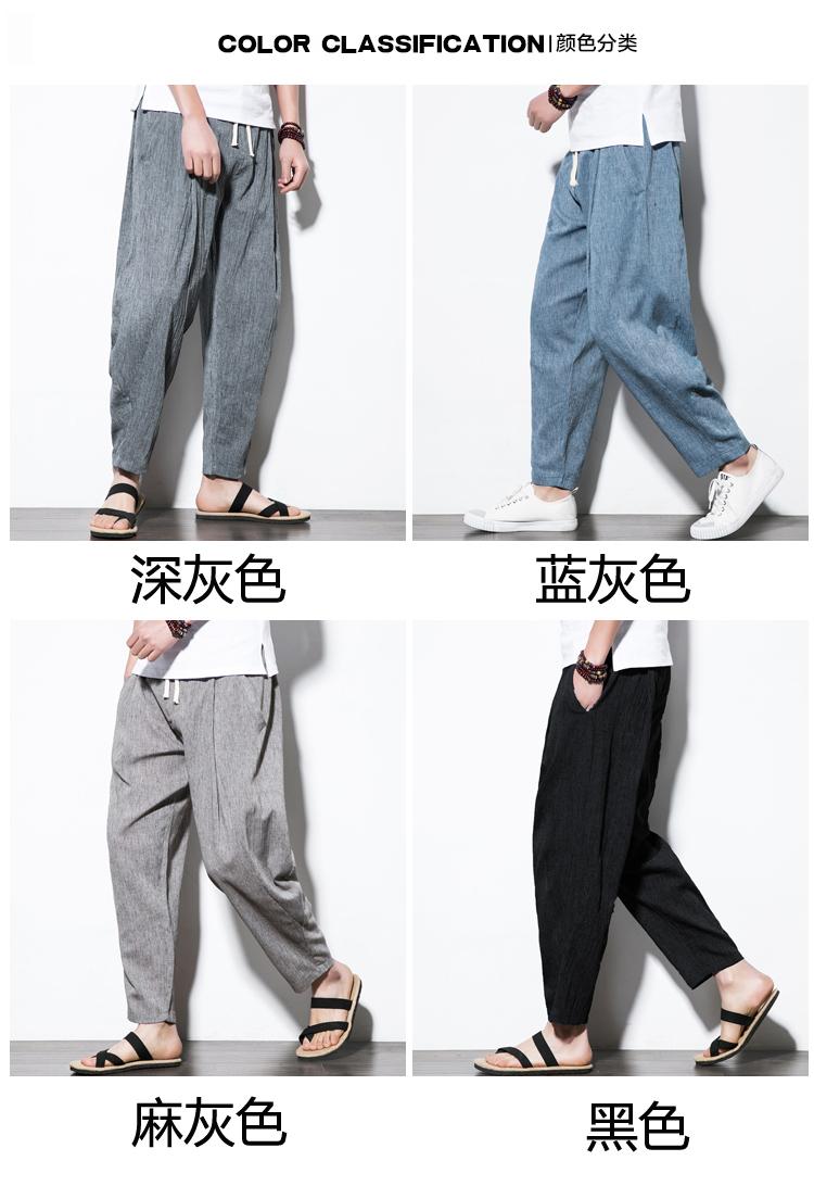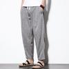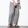 Calças de linho estilo chinês tamanho grande para uso no verão, calças casuais finas e soltas para homens, calças harém de algodão e linho, atacado
