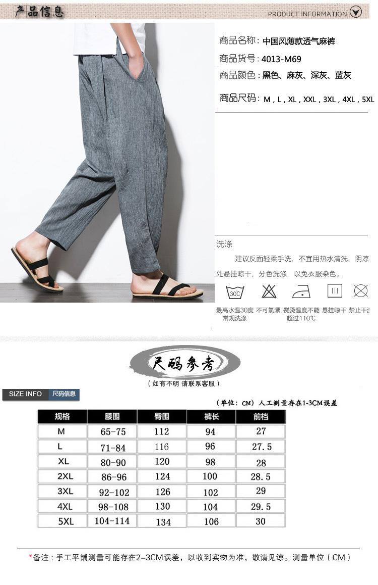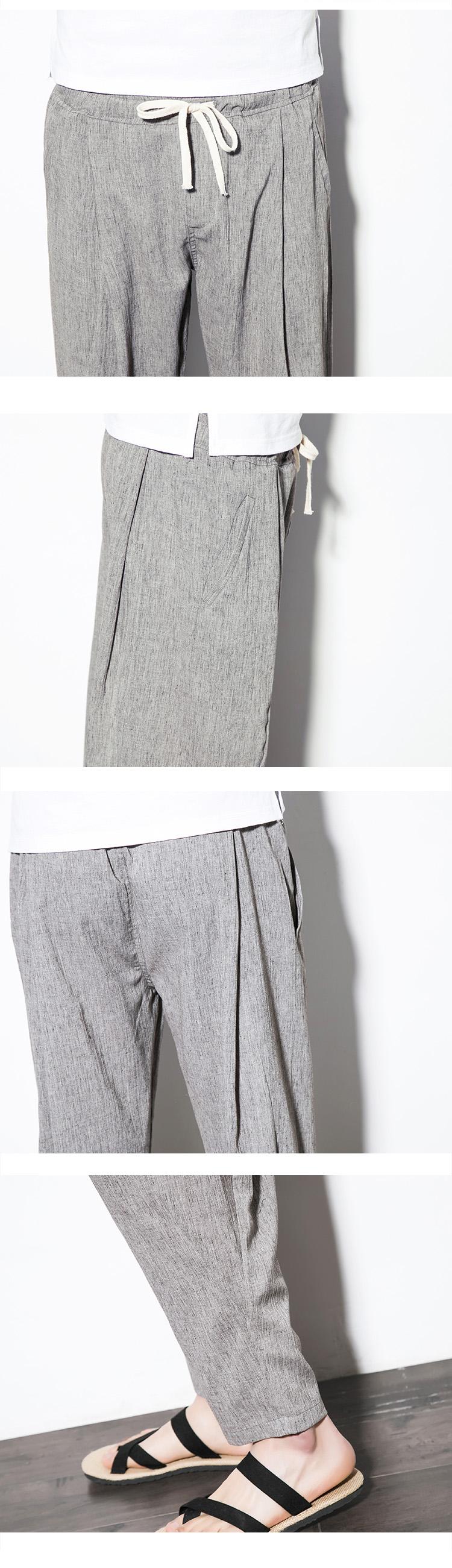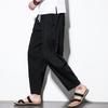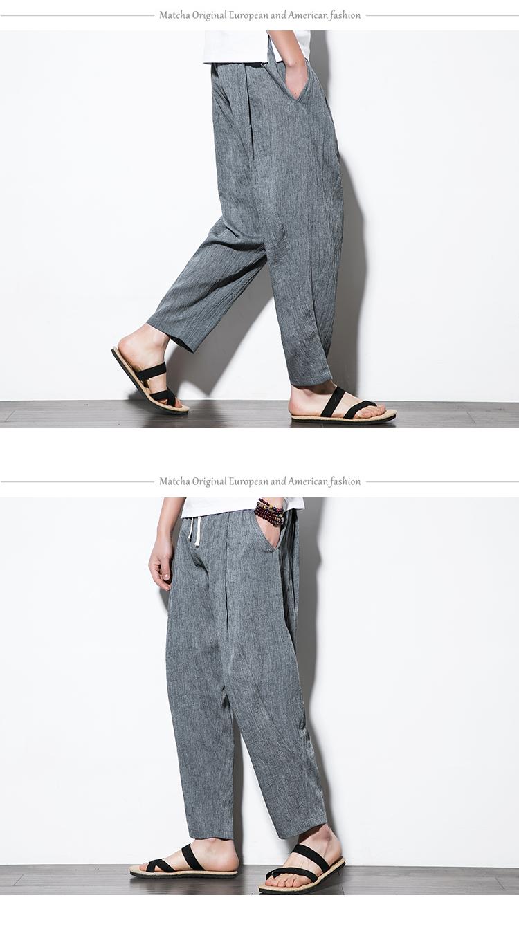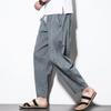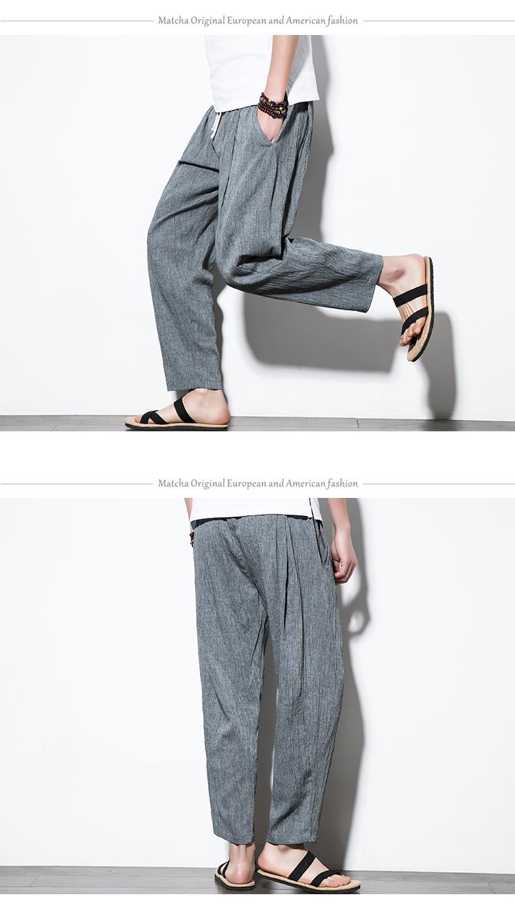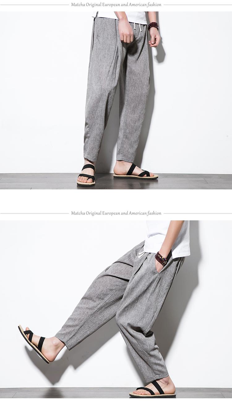 Calças de linho estilo chinês tamanho grande para uso no verão, calças casuais finas e soltas para homens, calças harém de algodão e linho, atacado