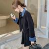 Terno de duas peças estilo francês, blusa e saia estilo coreano, roupas elegantes e modernas para mulheres