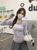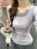 Compre Camiseta de manga comprida com costura falsa de duas peças, cor de ombro, top feminino, primavera e outono, slim fit, emagrecimento, puro desejo, base interna, camisa no atacado no Joom.pro