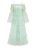 Em estoque Europeu e americano feminino transfronteiriço novo doce ombro a ombro manga comprida verde bolo saia onda ponto vestido ombro a ombro