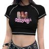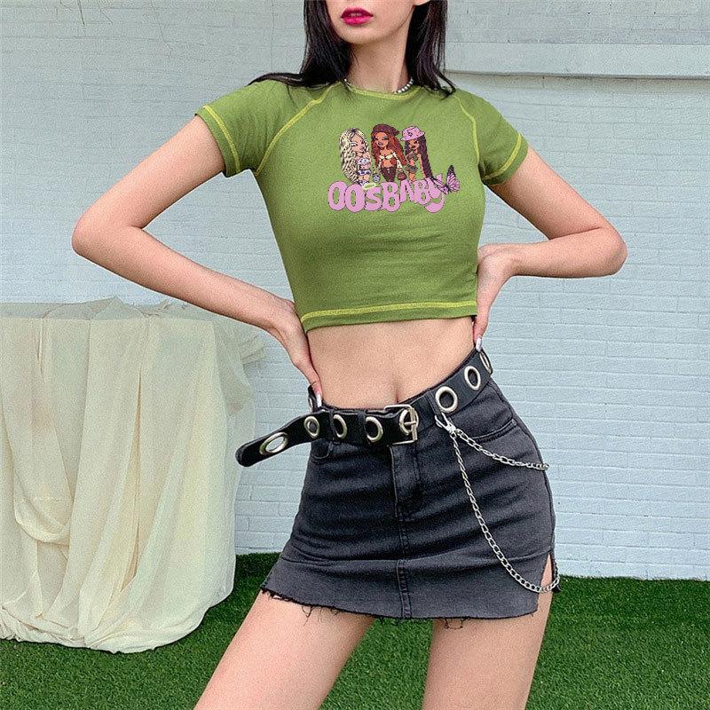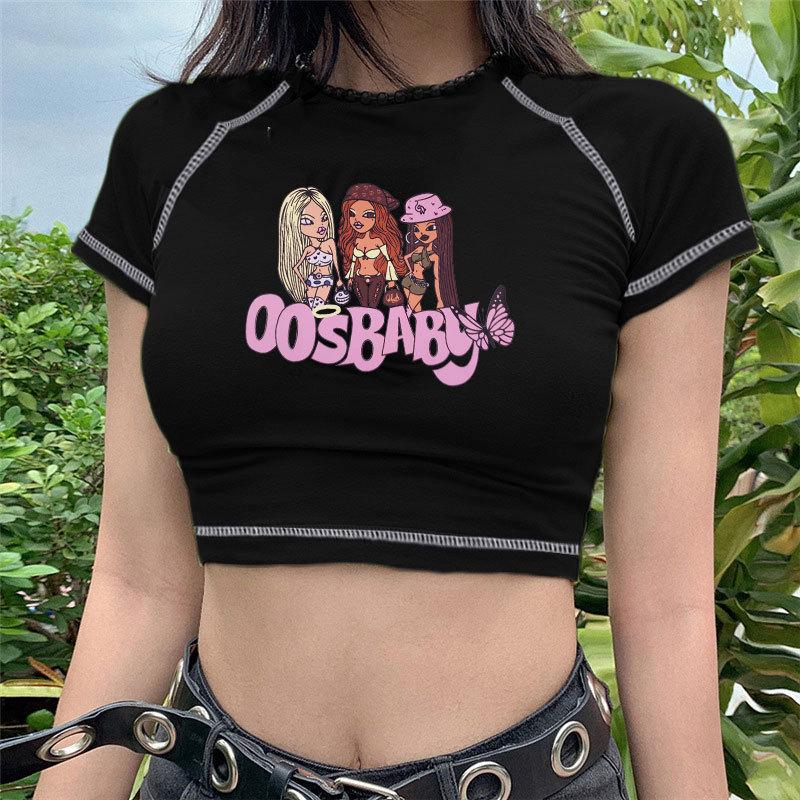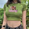 Europeu e americano AliExpress 2021 primavera novas letras femininas impressas umbigo top gola redonda manga curta camiseta
