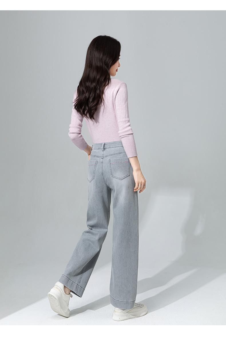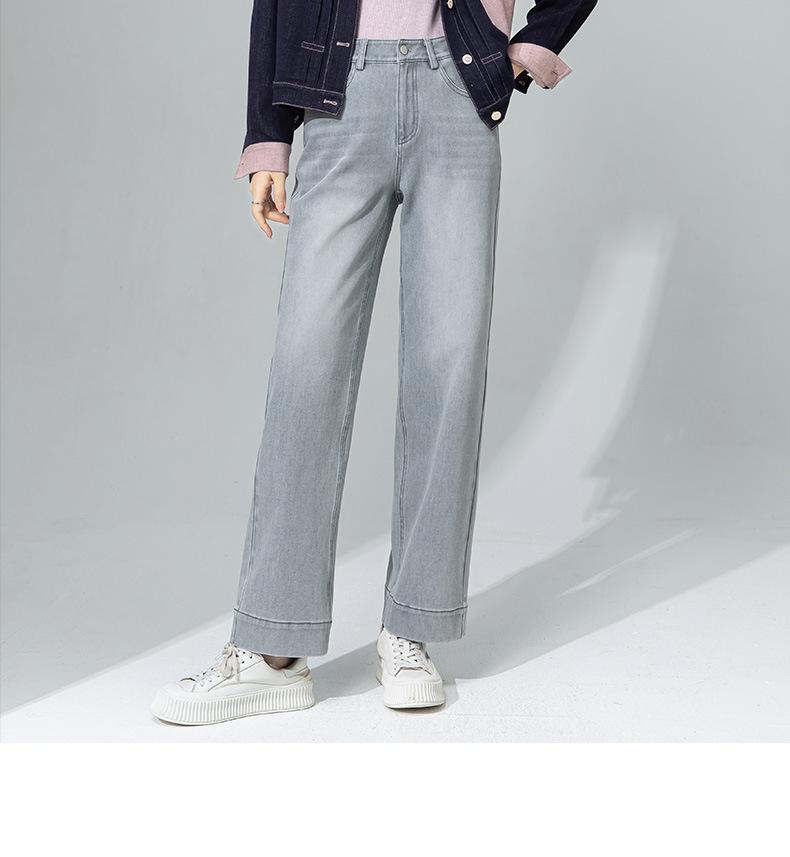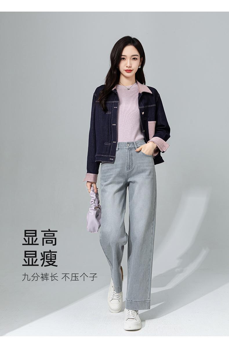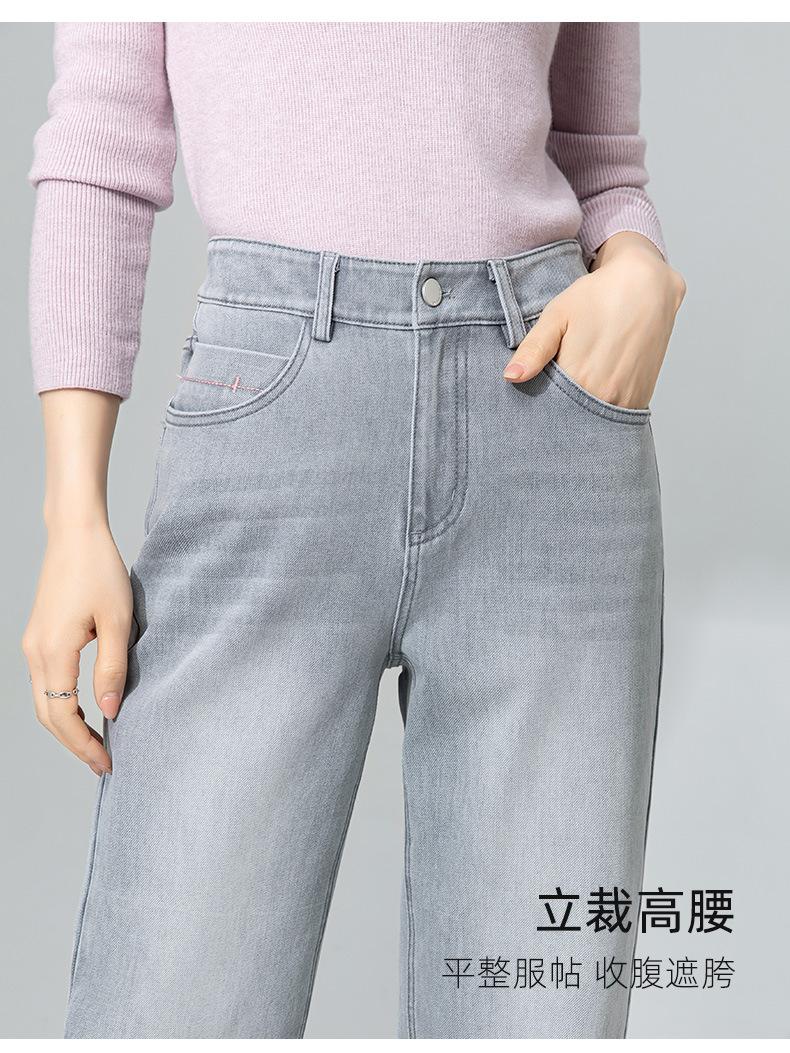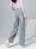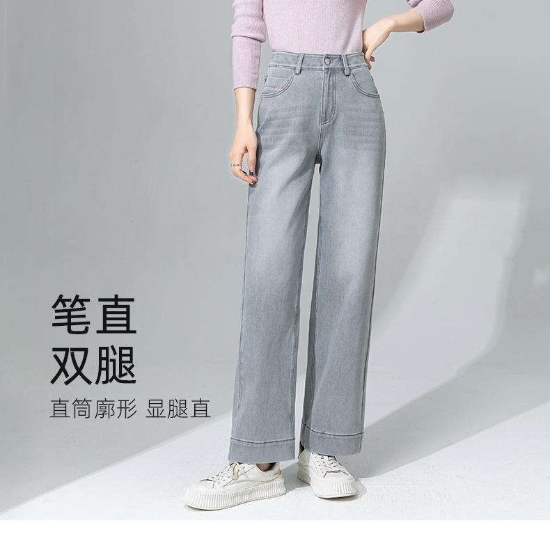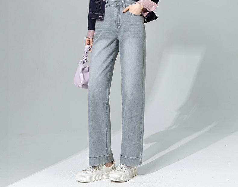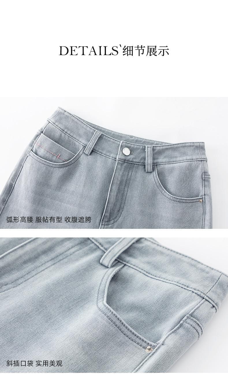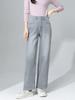 Calça Jeans Xinge Cinza Cropped Reta Feminina Primavera e Verão Nova Calça Solta de Cintura Alta Calça Pequena de Perna Larga