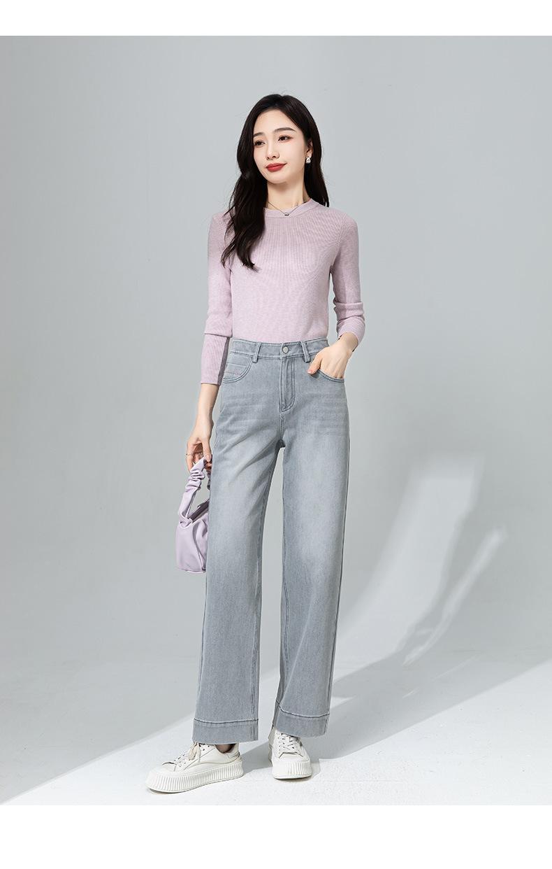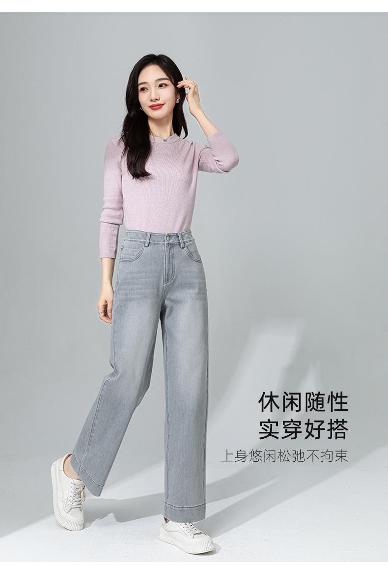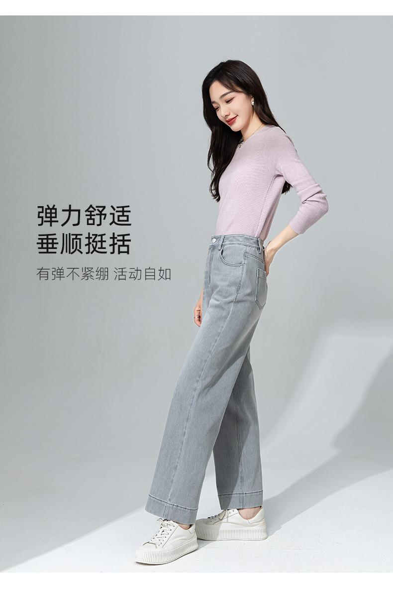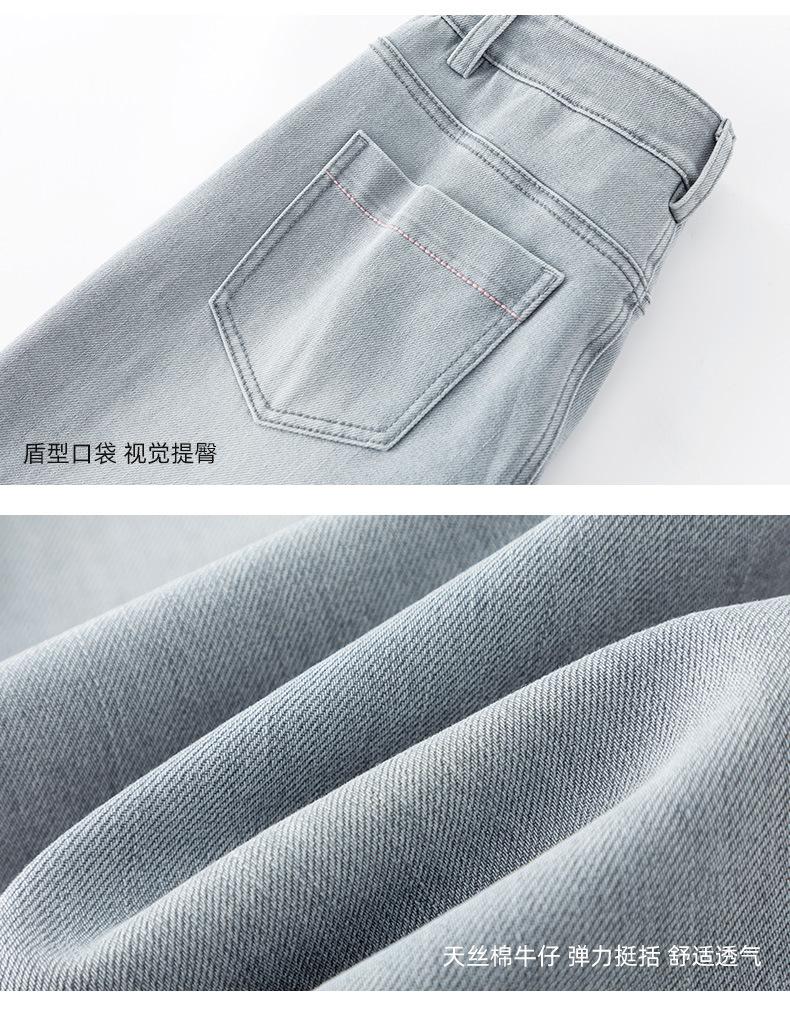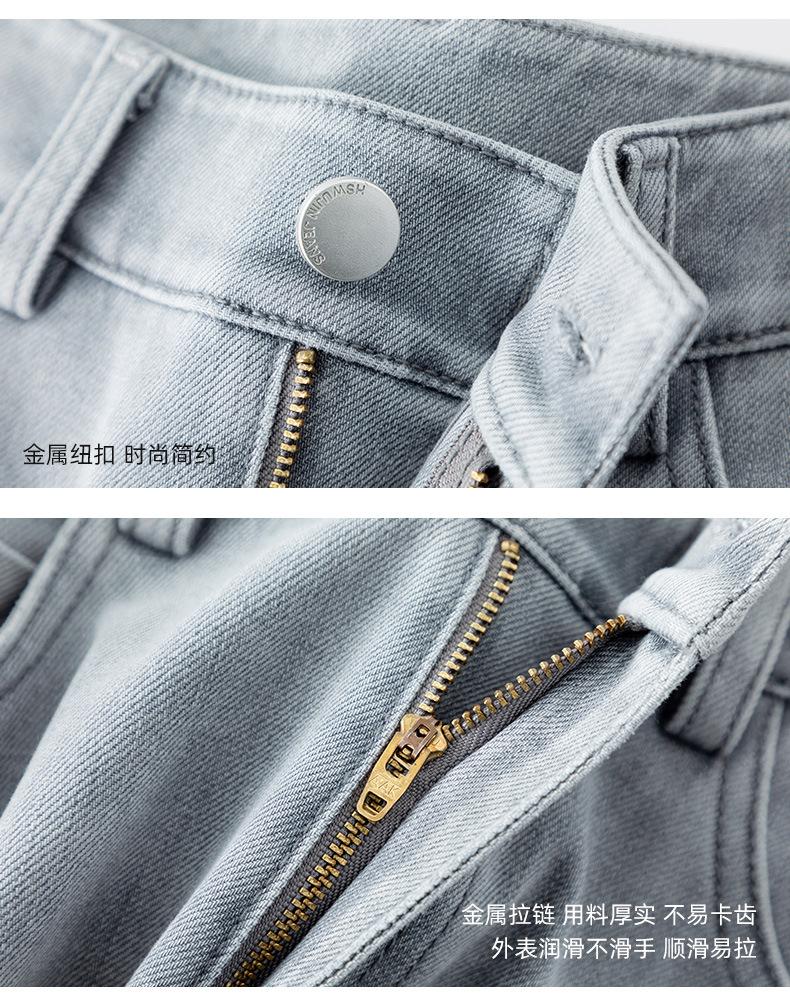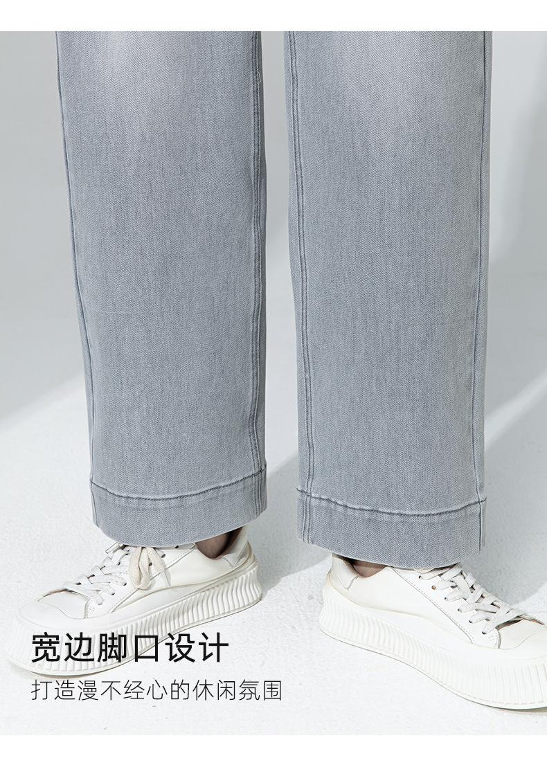 Calça Jeans Xinge Cinza Cropped Reta Feminina Primavera e Verão Nova Calça Solta de Cintura Alta Calça Pequena de Perna Larga