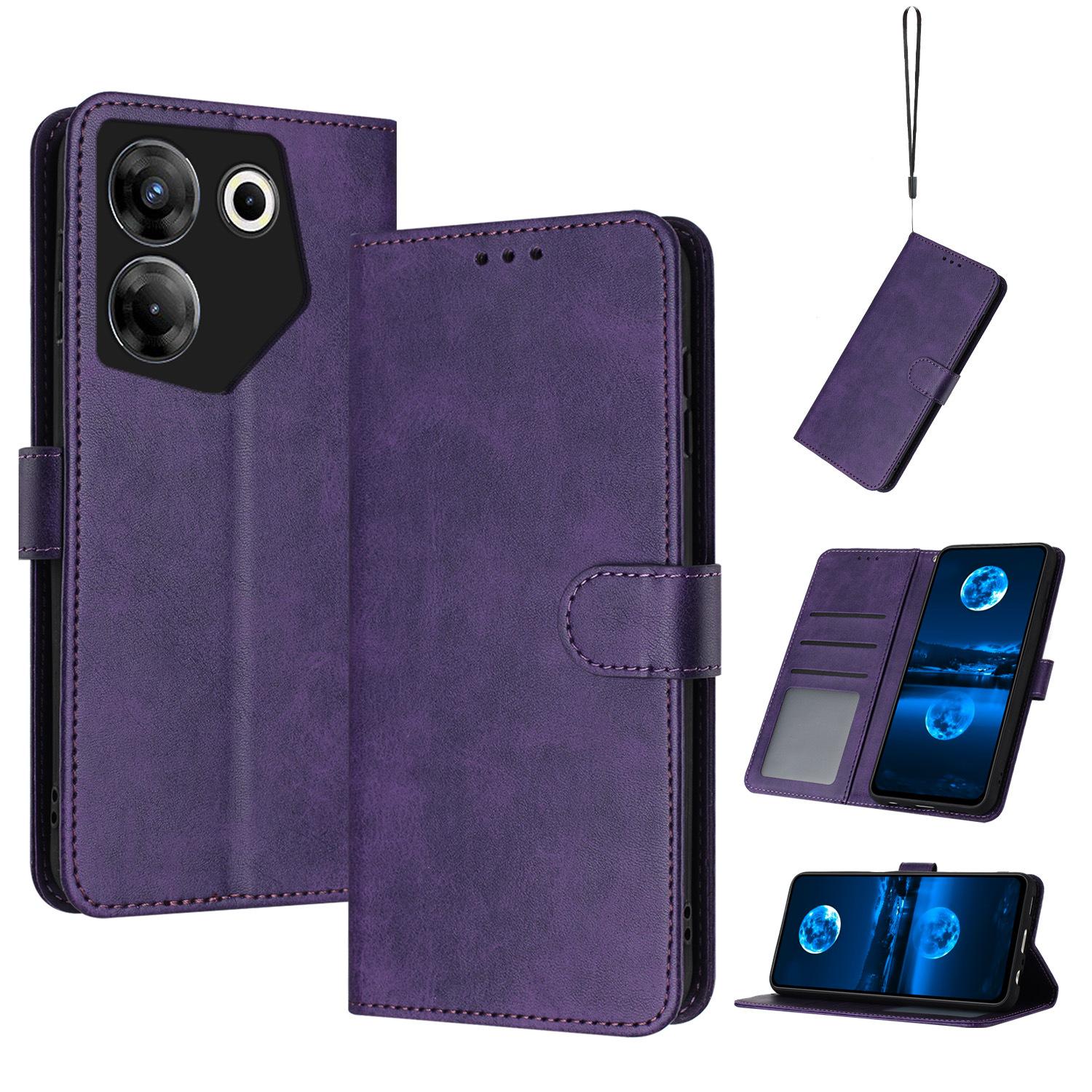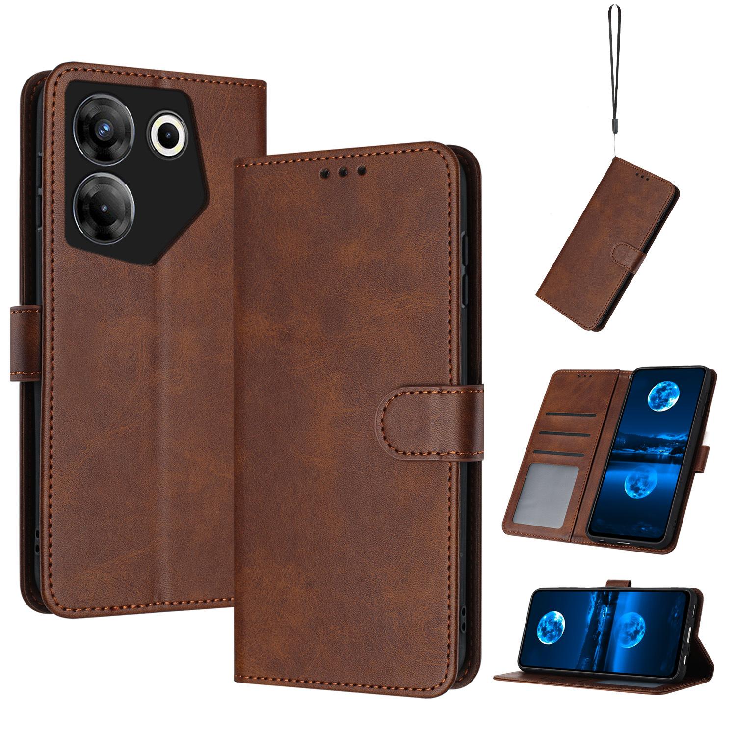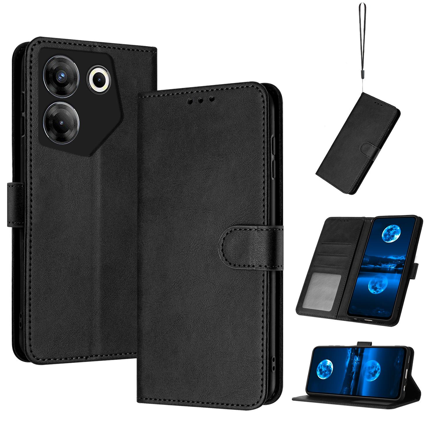 Adequado para Infinix NOTE 40 Capa de couro para celular POVA 6 Cor sólida Padrão de bezerro Porta-cartão RS4