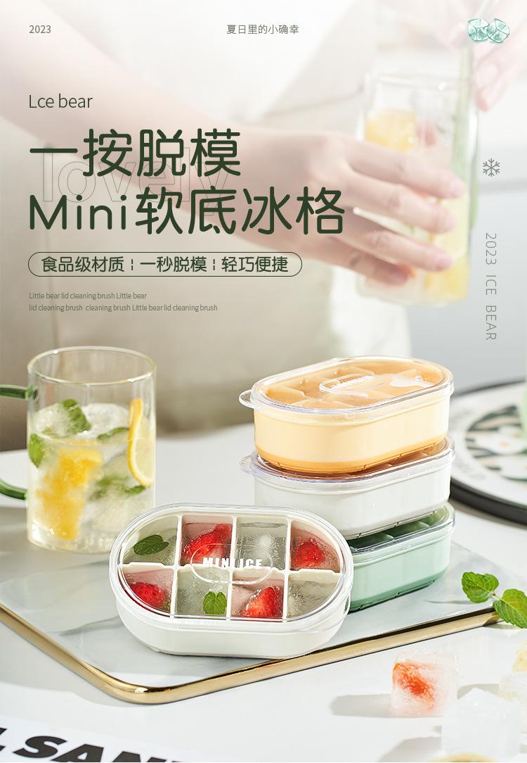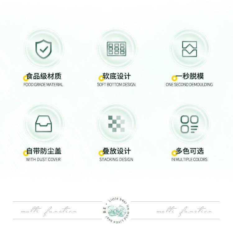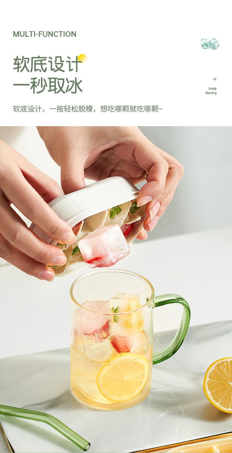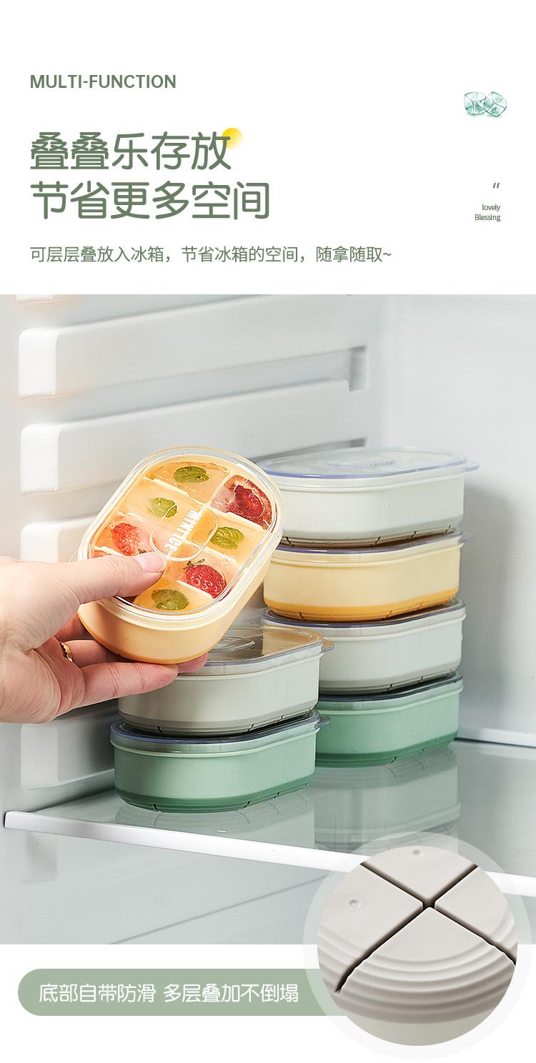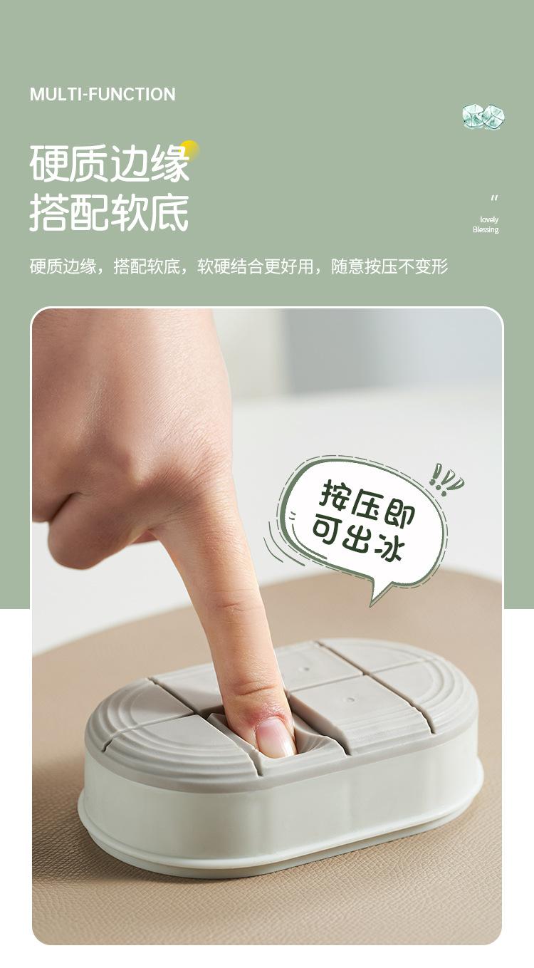 Nome do produto: Caixa oval com 8 compartimentos para cubos de gelo caseiros com tampa de proteção contra poeira visível e bandeja de gelo de fundo macio de silicone