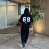 2024 Moda Europeia e Americana Impressa Com Capuz Pulôver Solto Suéter Zíper Cardigan Casais Masculinos e Femininos Suéter