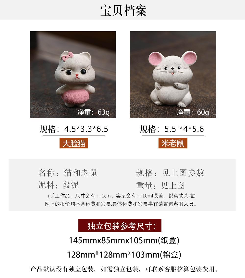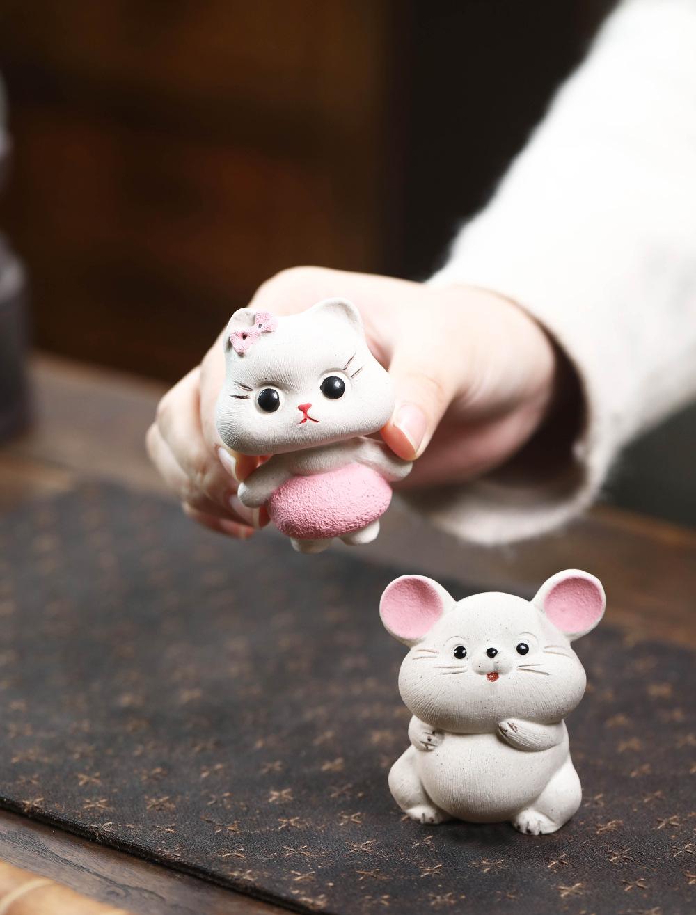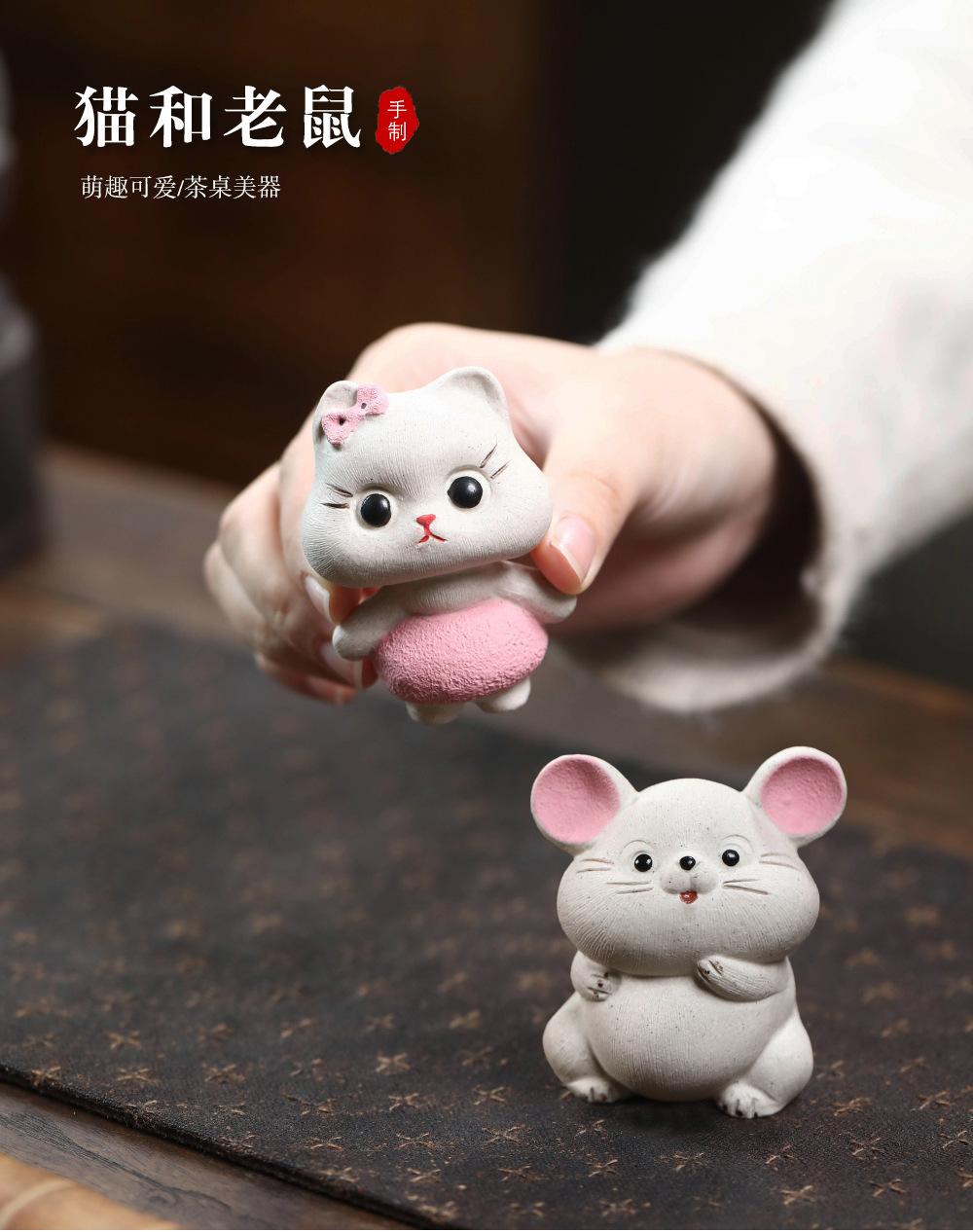 Yixing roxo areia chá pet gato e rato ornamentos escultura artesanal criativo conjunto de chá chá esteira acessórios cerâmica atacado