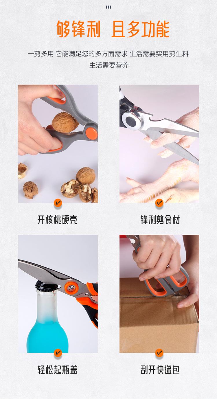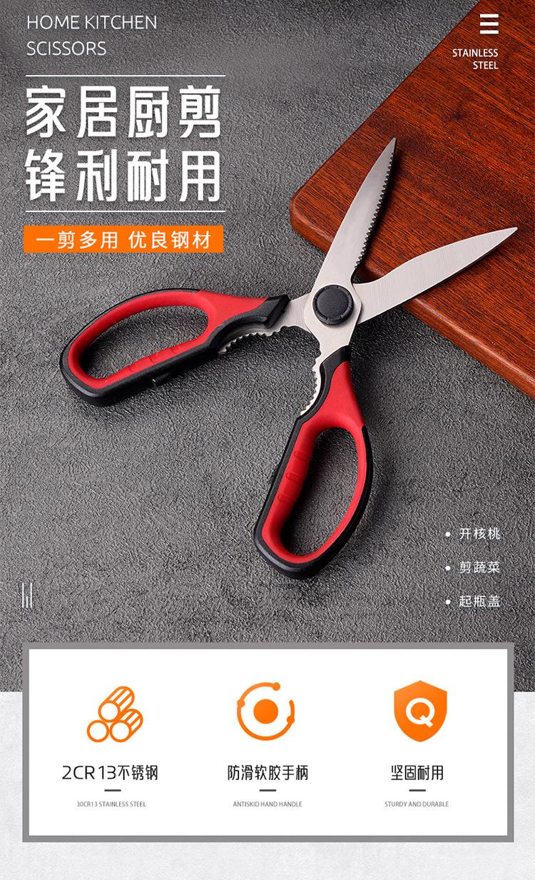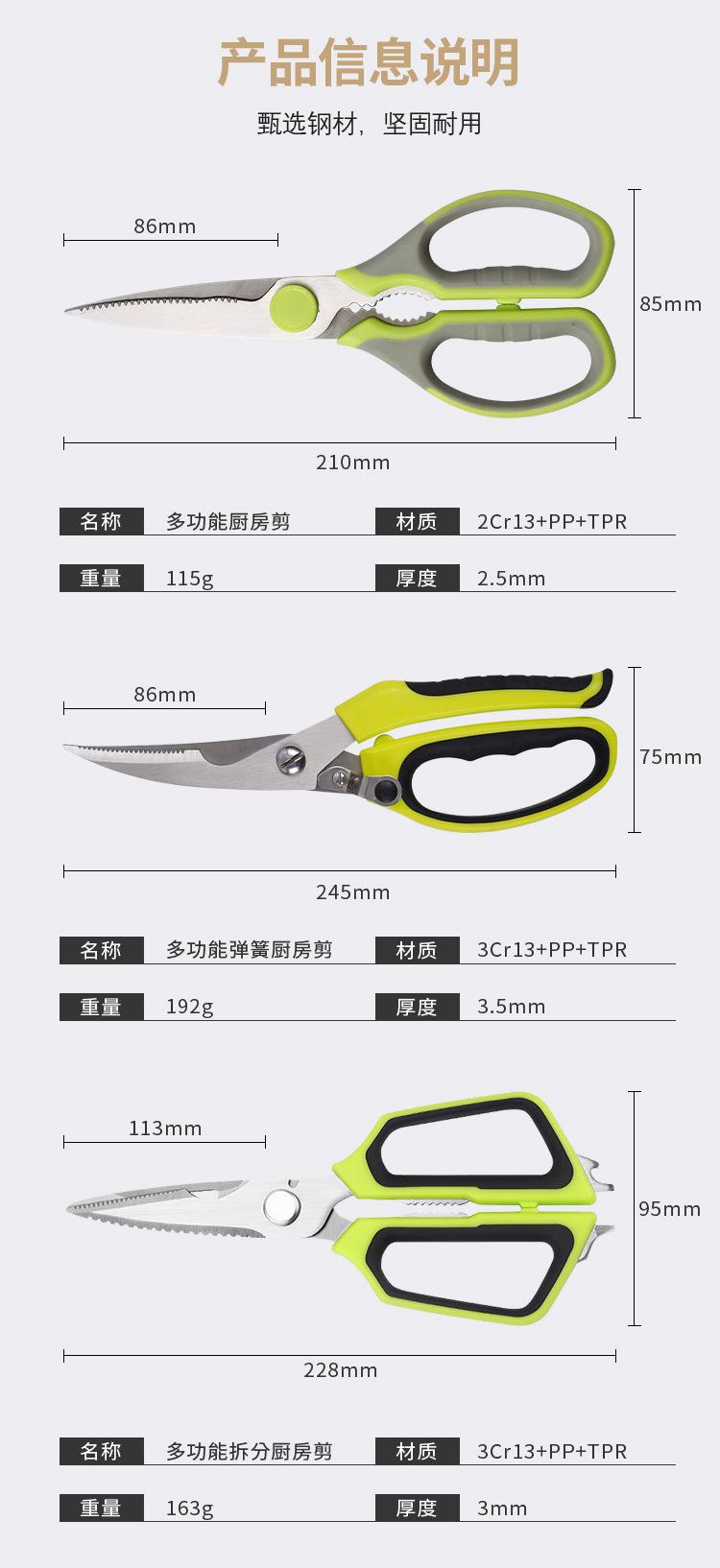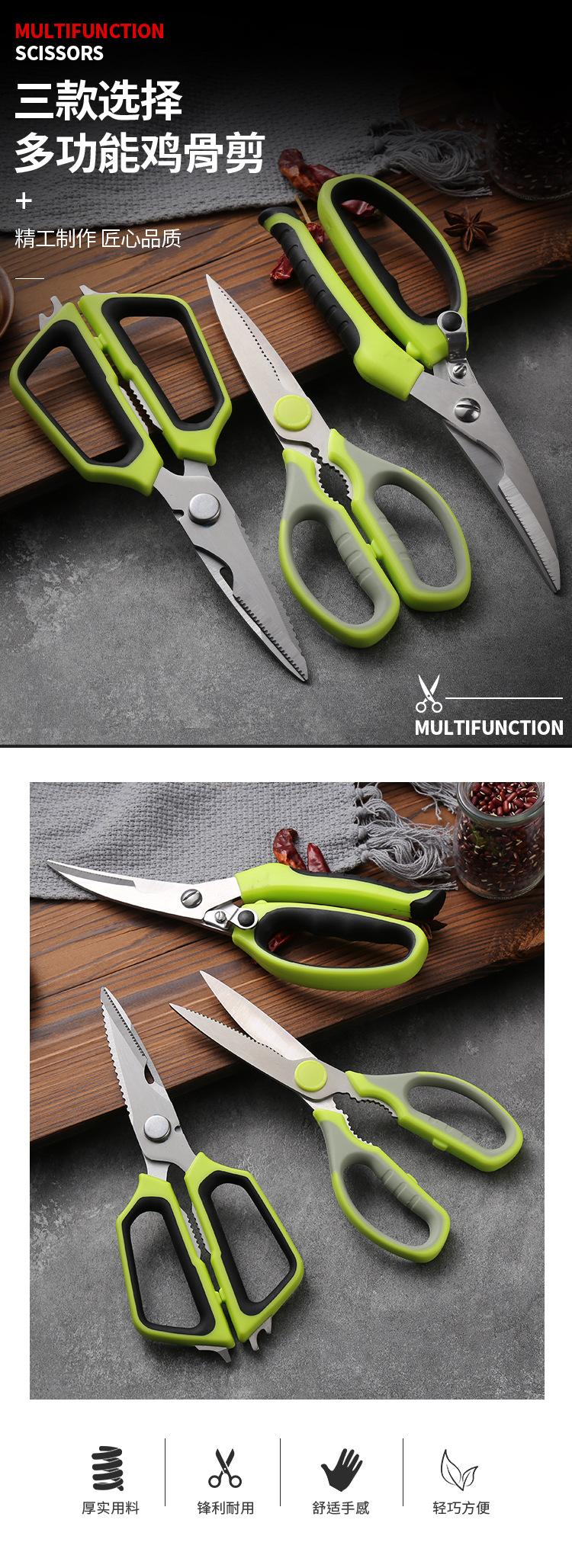 Em estoque tesoura de cozinha conjunto de três peças tesoura forte de osso de galinha tesoura multifuncional de aço inoxidável para matar peixes tesoura afiada de cozinha