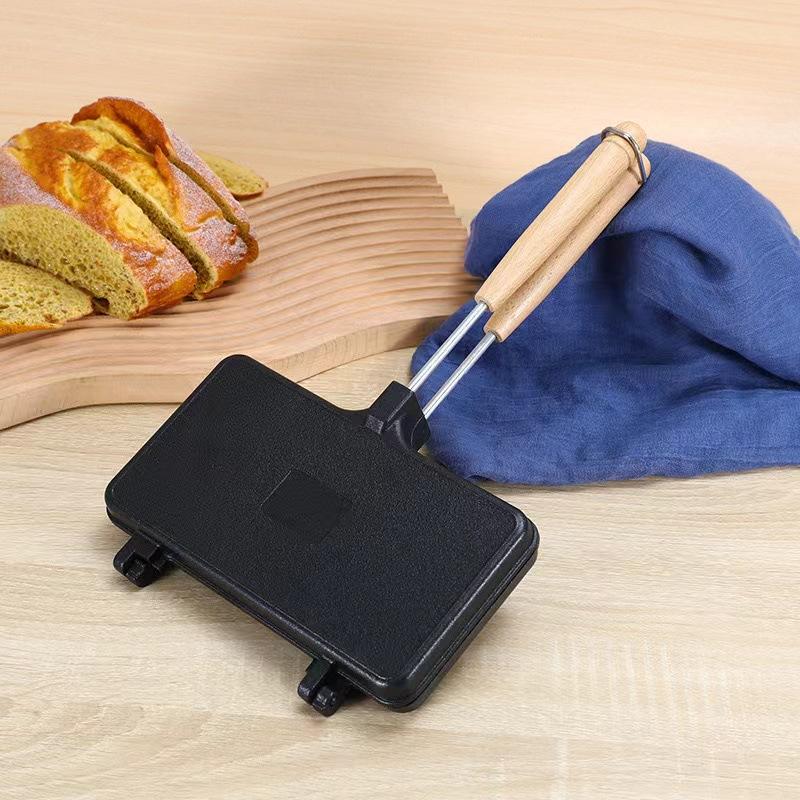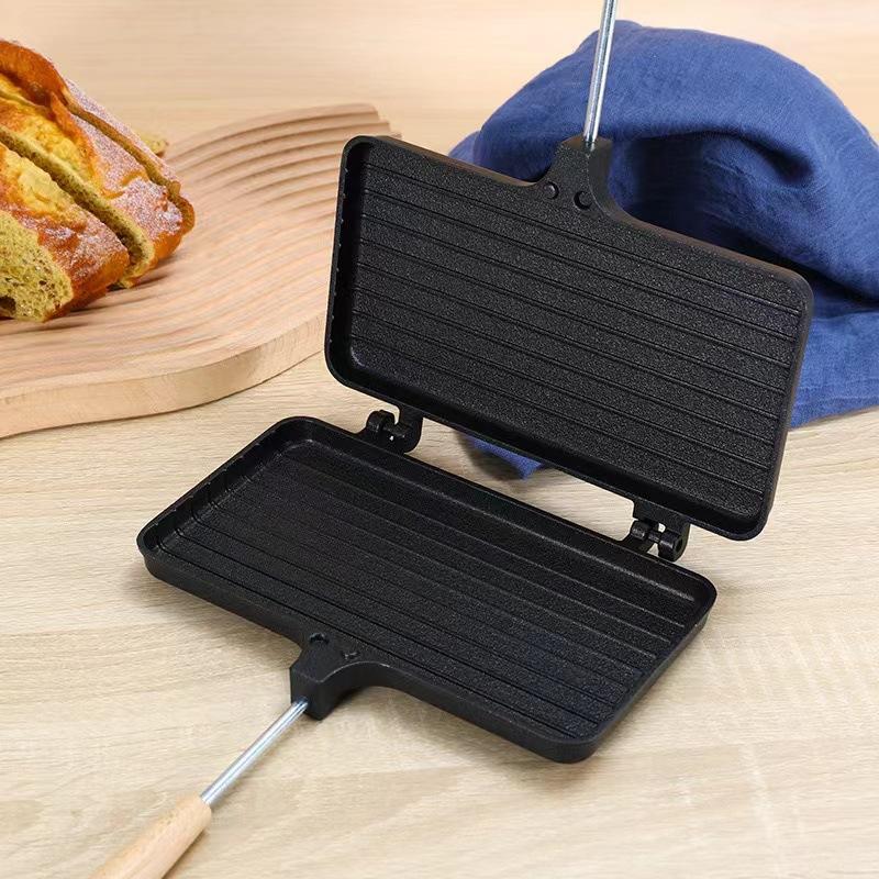 Bandeja de cozimento de sanduíche antiaderente com alça de madeira Molde de pão listrado interno de dupla face Ferramentas de cozimento de café da manhã doméstico Fornecimento direto da fábrica