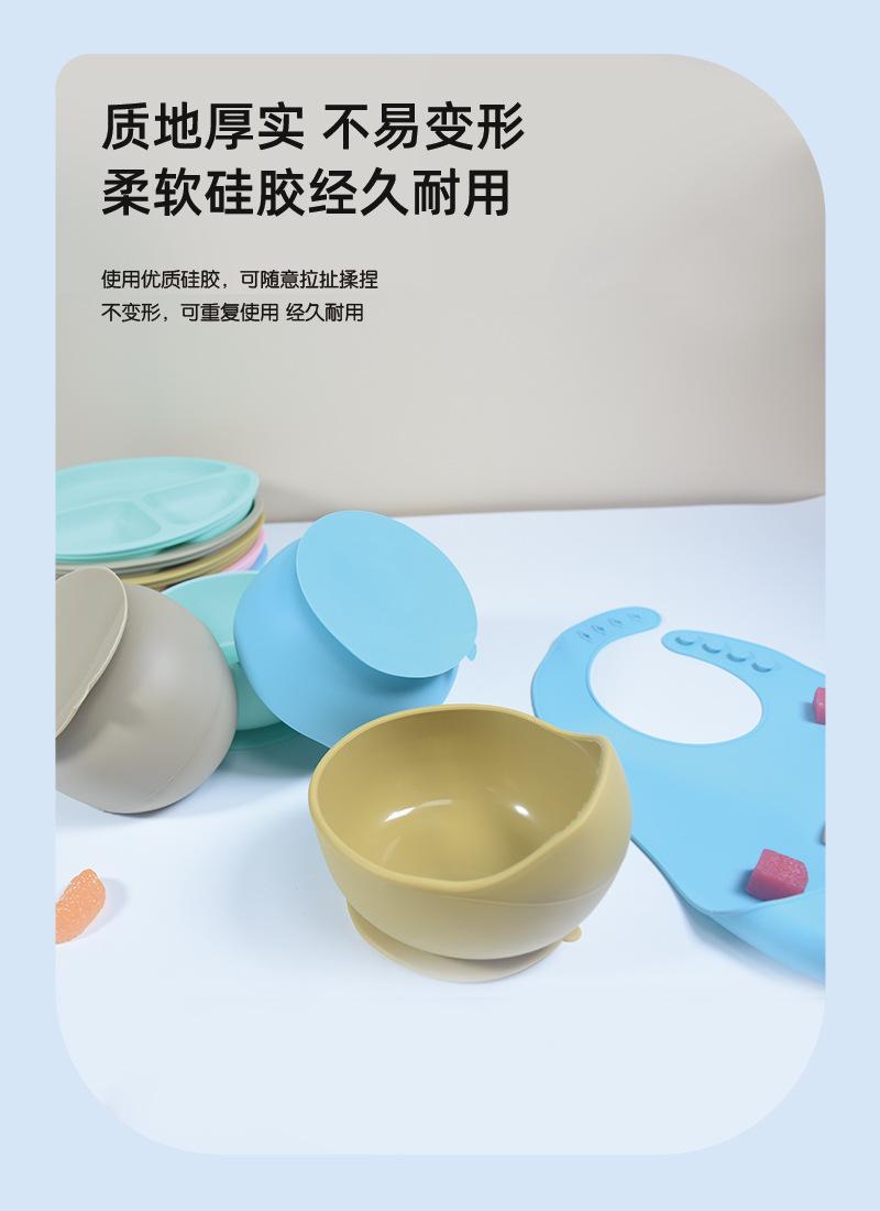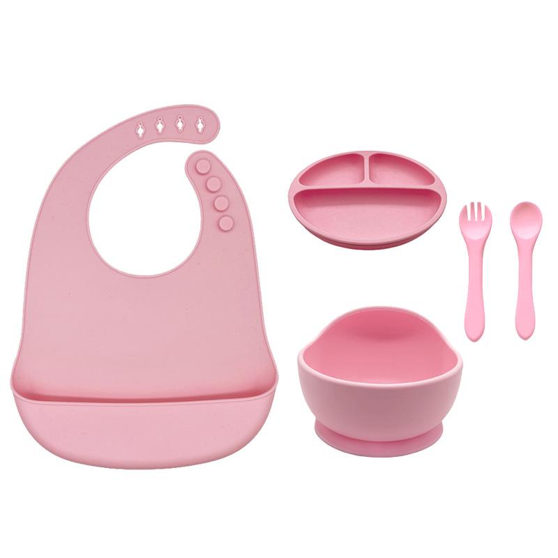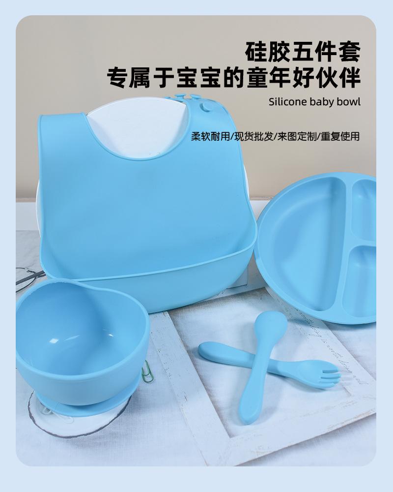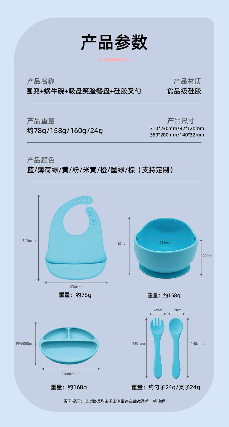 Prato de Suplemento Alimentar de Silicone para Bebê Tudo-Em-Um com Ventosa Louça Infantil de Cinco Peças para Refeição Prato Dividido com Rosto Sorridente