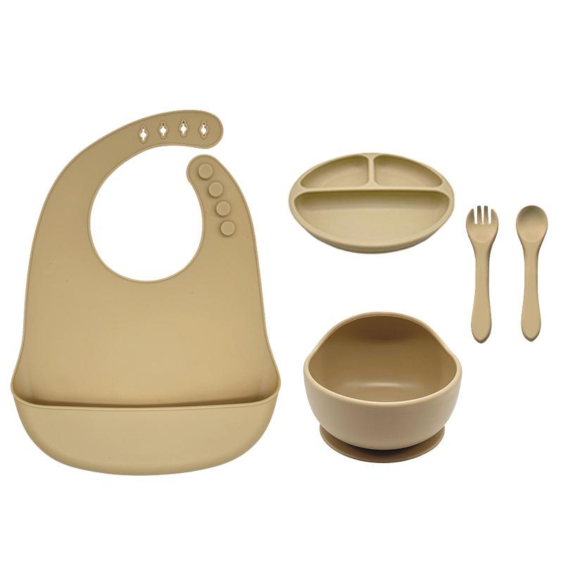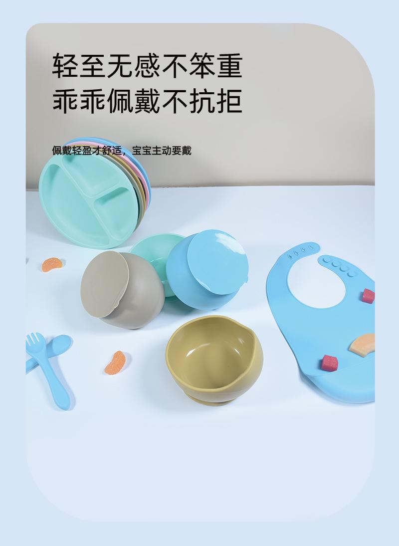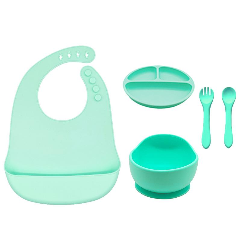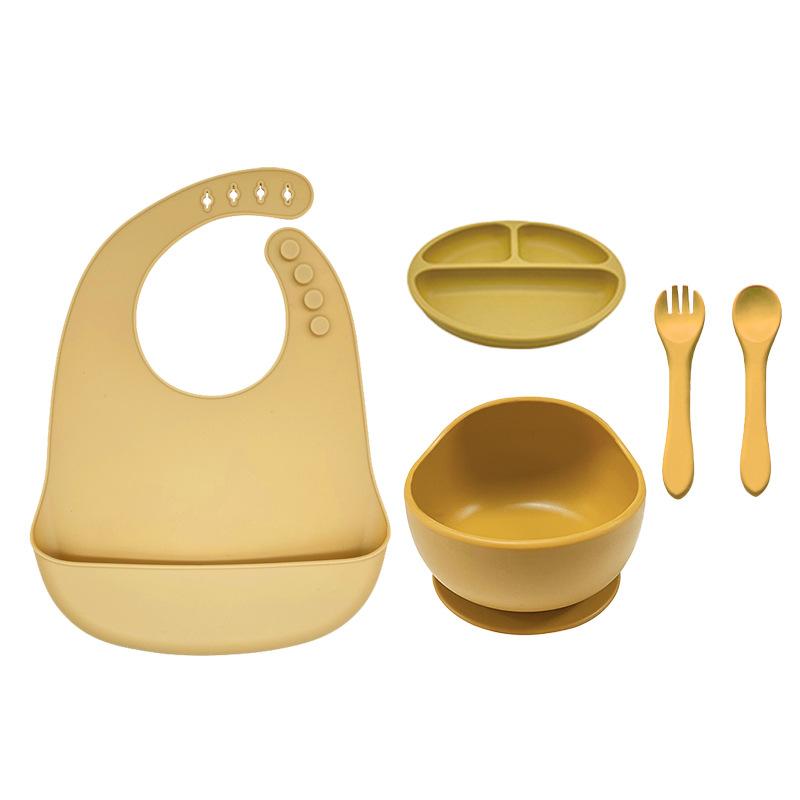 Prato de Suplemento Alimentar de Silicone para Bebê Tudo-Em-Um com Ventosa Louça Infantil de Cinco Peças para Refeição Prato Dividido com Rosto Sorridente