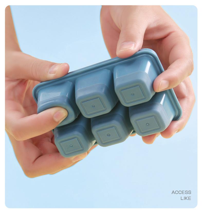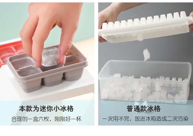 Instruções para remover cubos de gelo: Depois que os cubos de gelo forem feitos, você pode lavar o fundo da bandeja de cubos de gelo com a linha de montagem e, em seguida, pressionar a borracha macia para remover os cubos de gelo.