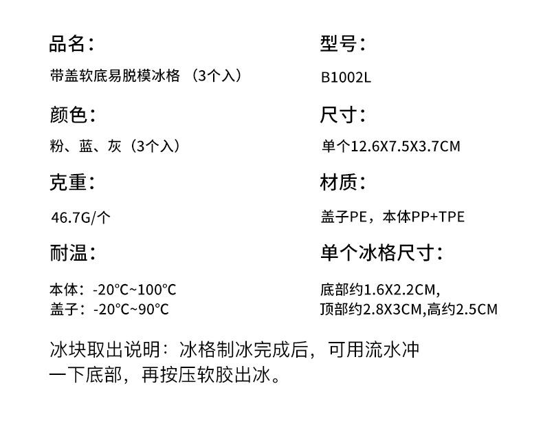 Nome: Bandeja de gelo de fundo macio com tampa (pacote com 3)