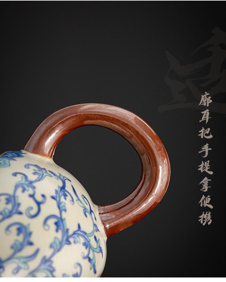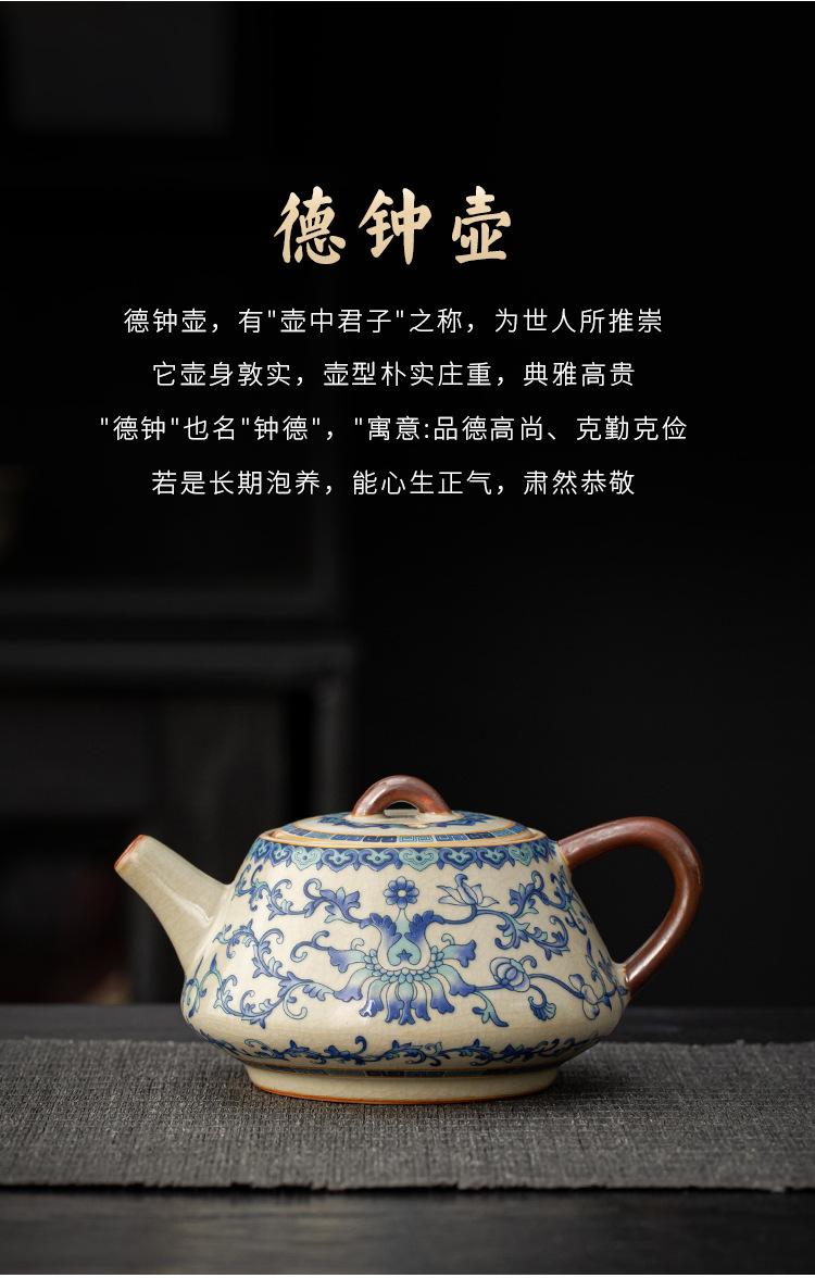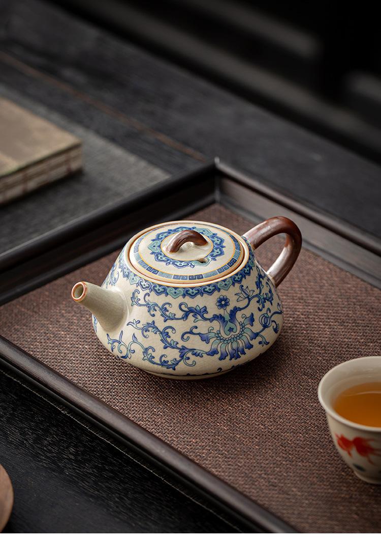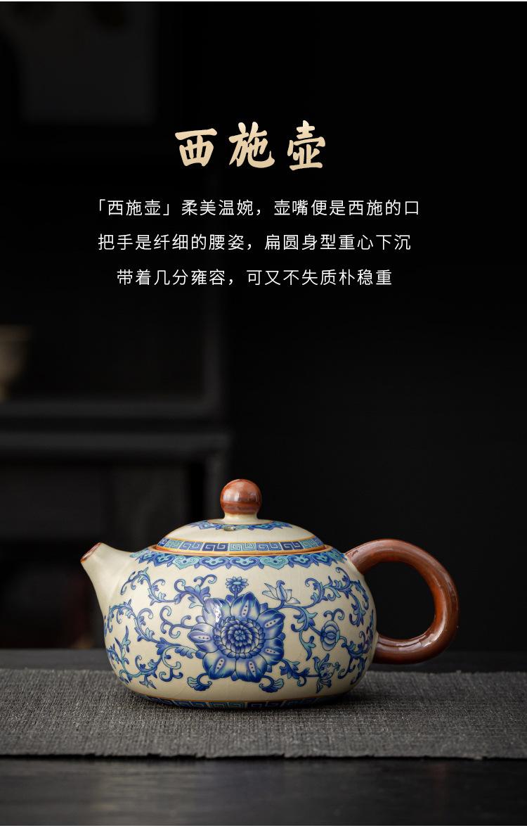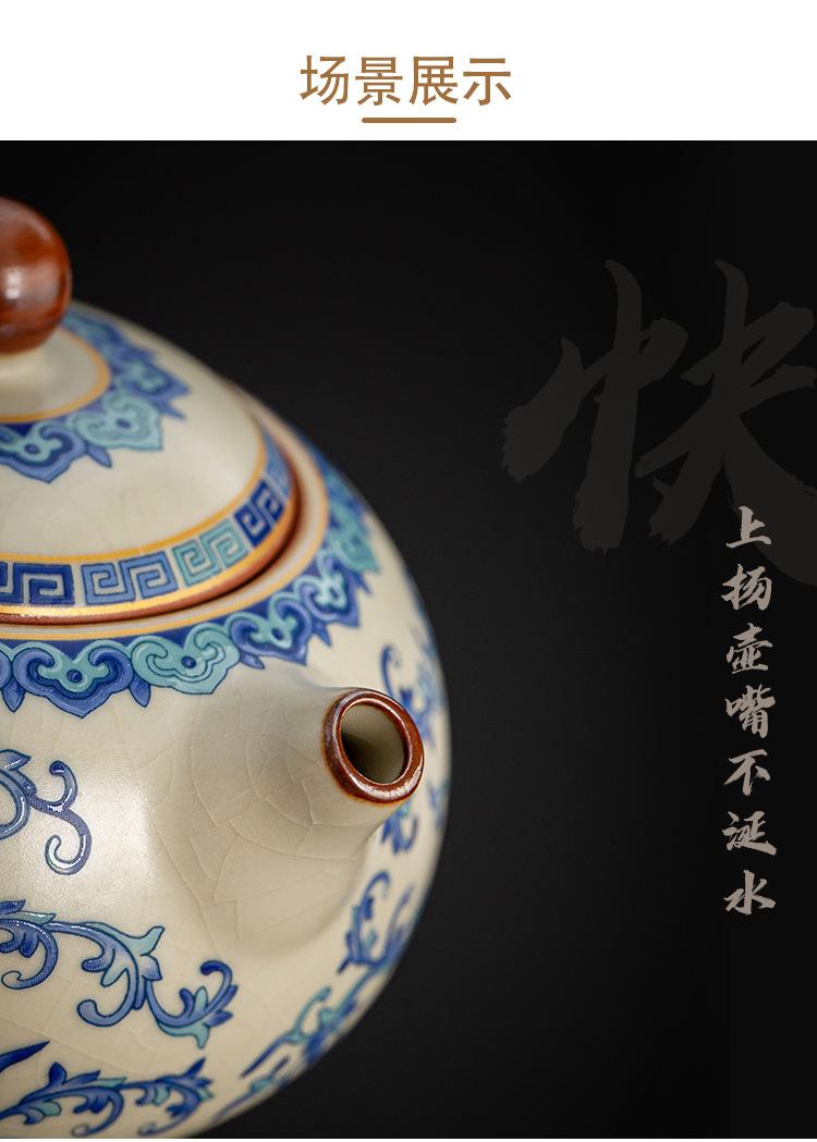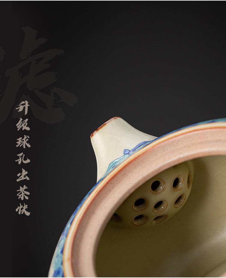 Azul e branco Ru kiln pedra concha pote cerâmica bule bule chá casa kung fu único pote imitação esmalte de alta qualidade cor chá utensílios