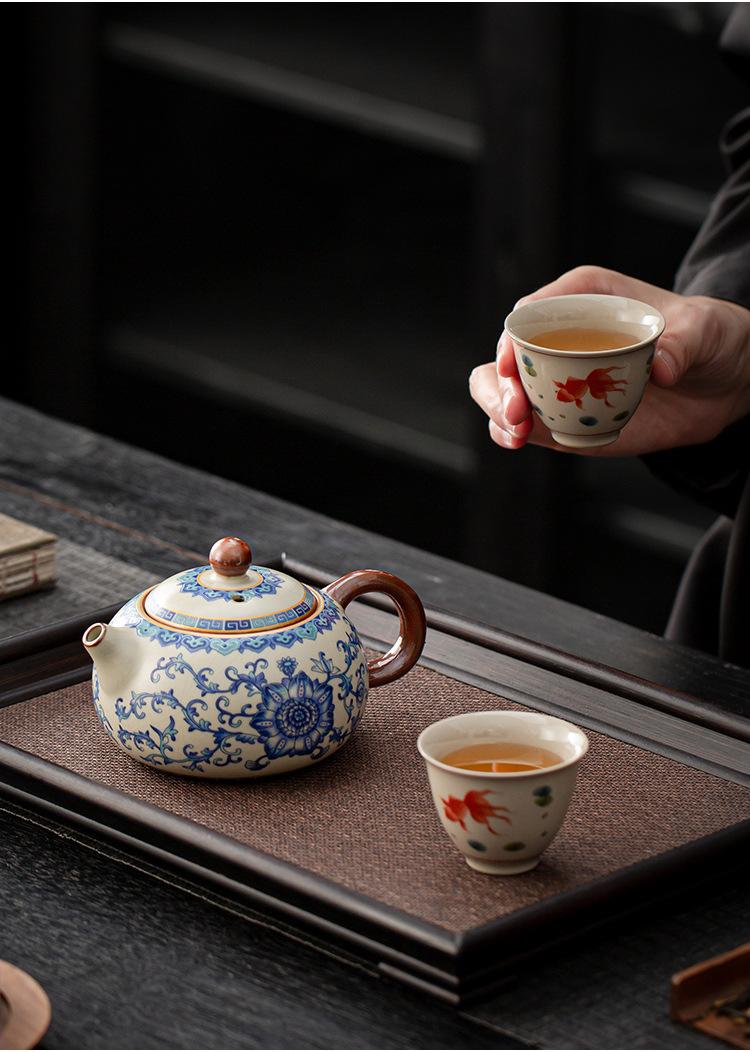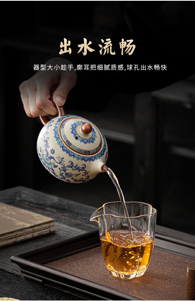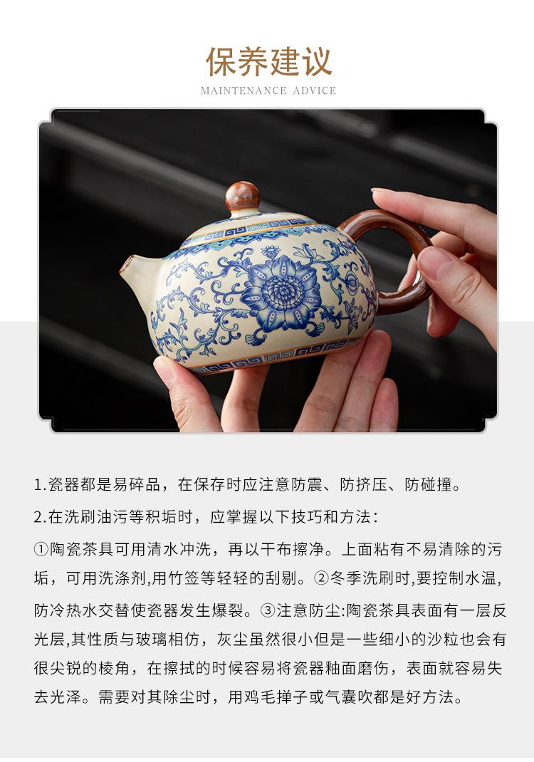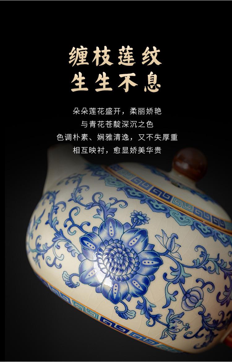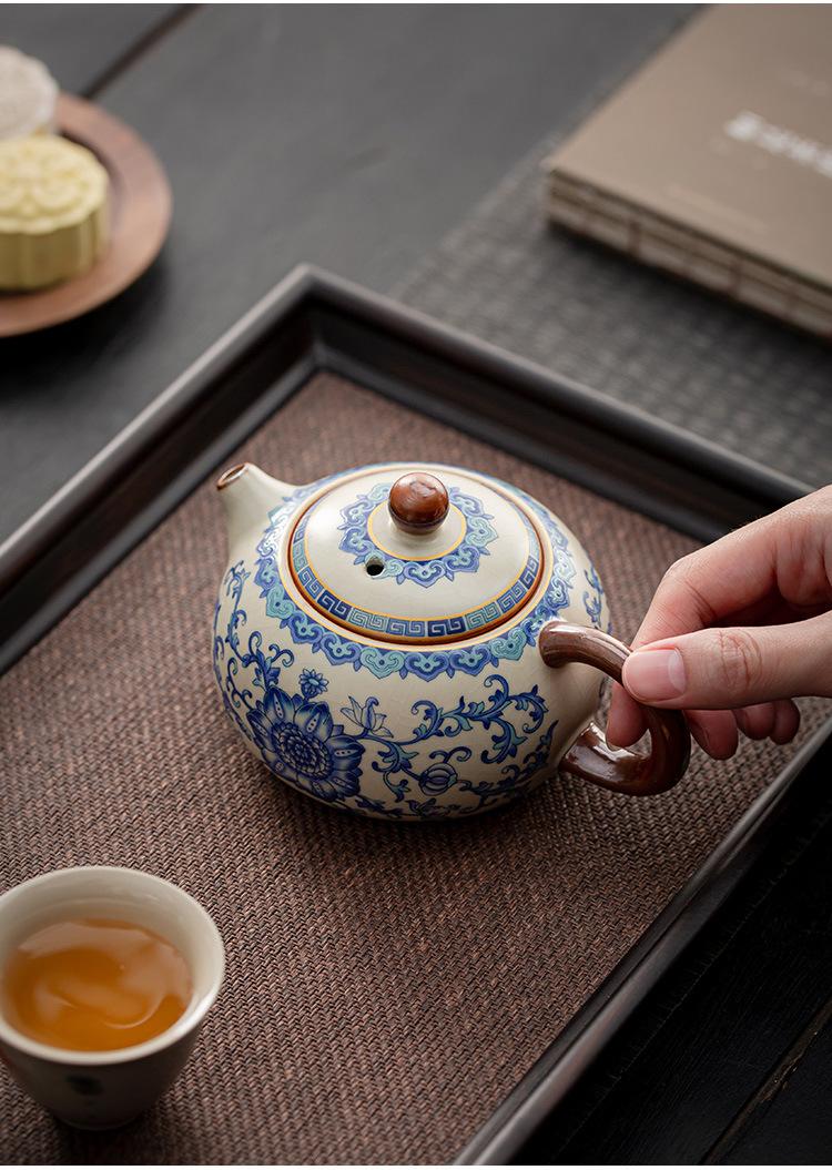 Azul e branco Ru kiln pedra concha pote cerâmica bule bule chá casa kung fu único pote imitação esmalte de alta qualidade cor chá utensílios