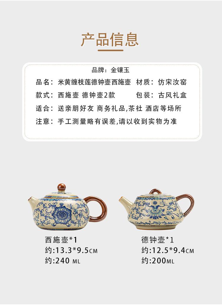 Ouro incrustado milho amarelo Ru forno Xishi bule de chá xícara de chá único pote rachado pode ser levantado dispositivo de preparação de chá cerimônia do chá casa kung fu conjunto de chá